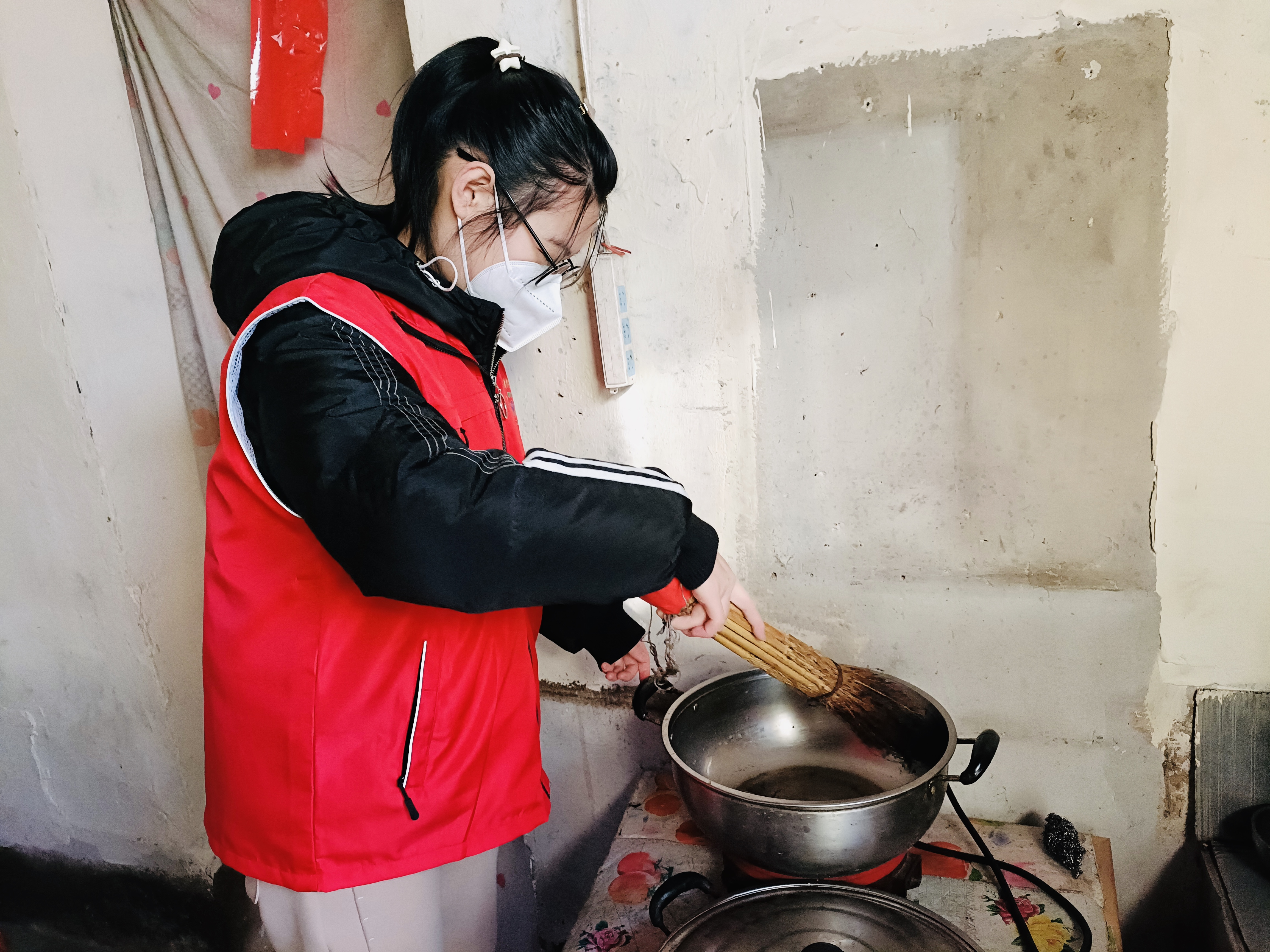 當日,8名大學生來到崔家莊村,將春聯、紅薯等物資分別送到了老人手中。掃地、擦玻璃、刷鍋……每到一戶,在清理衛生之余,他們都會幫老人捶背按摩,并坐下與老人談心,詢問老人近期的生活情況、身體狀況,叮囑老人要注意飲食衛生、保重身體。同時他們還細心檢查了老人們家中的水電氣設施設備情況,囑咐老人們要安全用電。“孩子們,謝謝你們。”“真懂事,太感謝了!”看著老人們幸福的笑容,志愿者們的心里也暖洋洋的。隨后,志愿者也給村里的留守兒童送去了書包、點讀筆、收納袋等學習和生活用品,并通過和他們做游戲鼓勵他們努力學習。“春節臨近,空巢老人和留守兒童更需要照料與幫扶,正值寒假放假期間,利用空余時間做一些公益活動,我覺得很有意義。接下來我還會參加更多志愿服務活動,把奉獻、友愛、互助、進步的志愿者精神傳承下去。”志愿者孫文秀說。