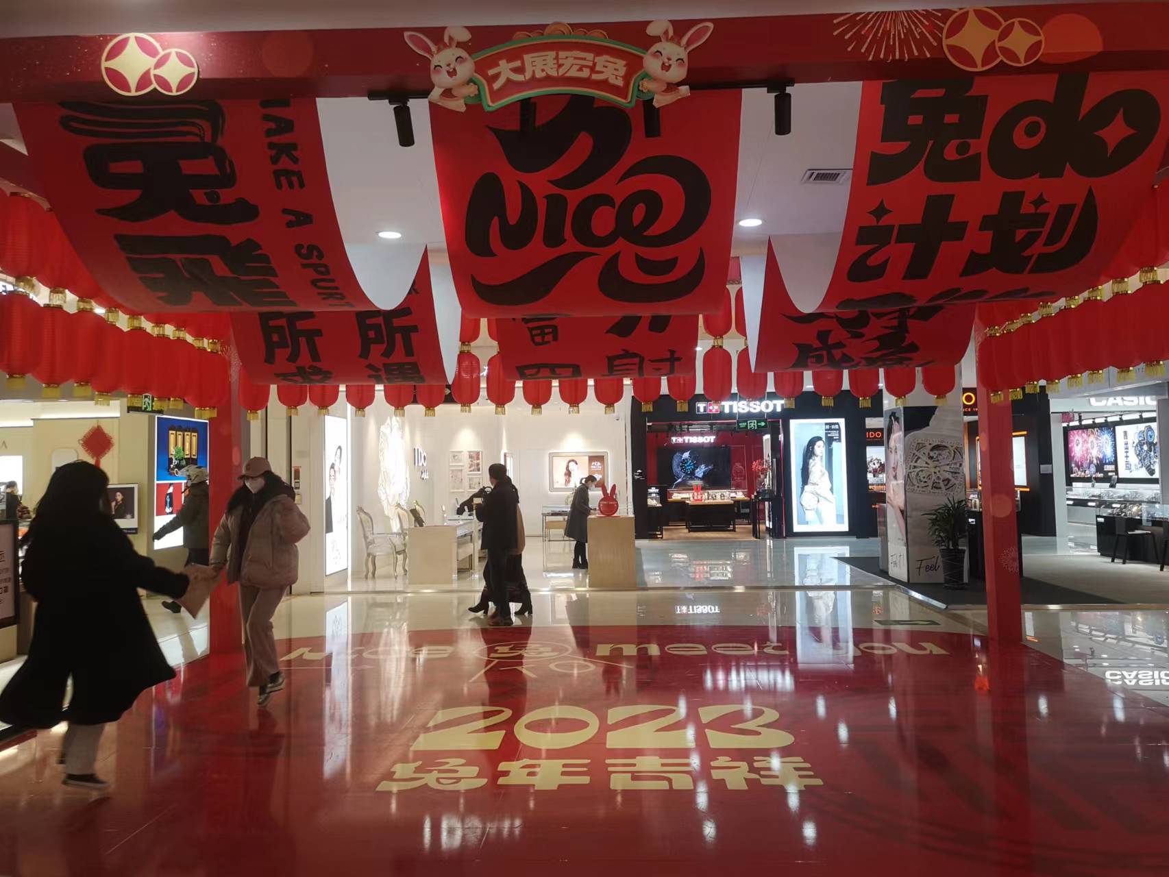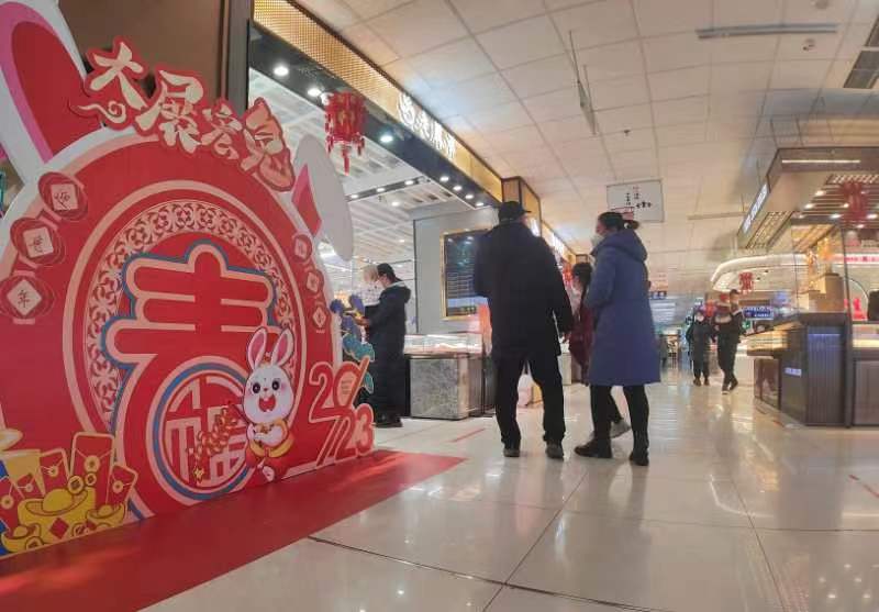 1月13日上午10時許,記者走進信譽樓百貨(衡水店)看到,商場內人頭攢動,顧客絡繹不絕。紅紅的燈籠、新年祝福標語、各式各樣的福字、兔年掛飾、中國結等春節元素集中亮相,到處洋溢著濃濃的年味兒。