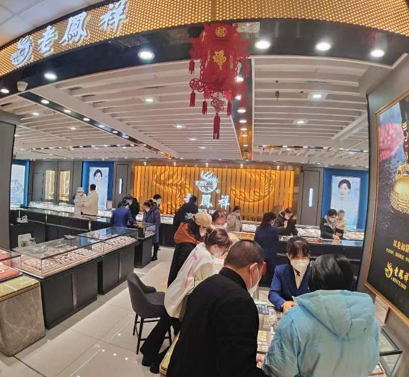 為了吸引顧客,各類商品紛紛推出打折優惠以及抽獎互動活動。在服飾區,各種男裝、女裝、童裝擺滿了柜臺,來挑選新年服飾的顧客絡繹不絕。某品牌女裝導購員張女士告訴記者,近期每個時段進店的客流量都明顯增加,基本從上午開店到晚上閉店都在陸續接待顧客,這樣的忙碌讓她有種久違的熟悉感。此外,黃金飾品柜臺前也是顧客不斷,帶有兔子造型和圖案的各類黃金飾品深受大家喜愛。