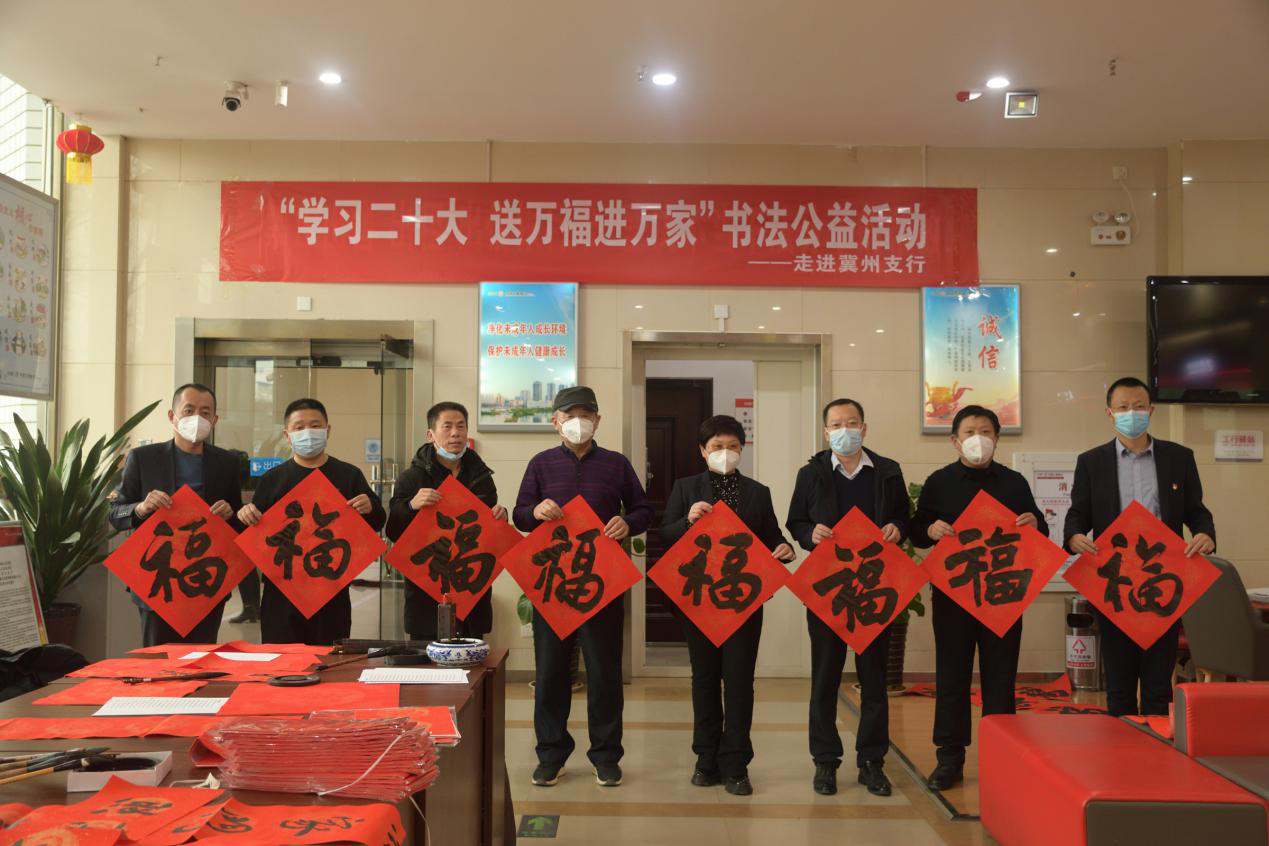 為推動黨的二十大精神宣傳貫徹,普及金融為民、惠民,日前,工行衡水分行到部分縣域支行開展“學習二十大 送萬福進萬家”書法公益活動。