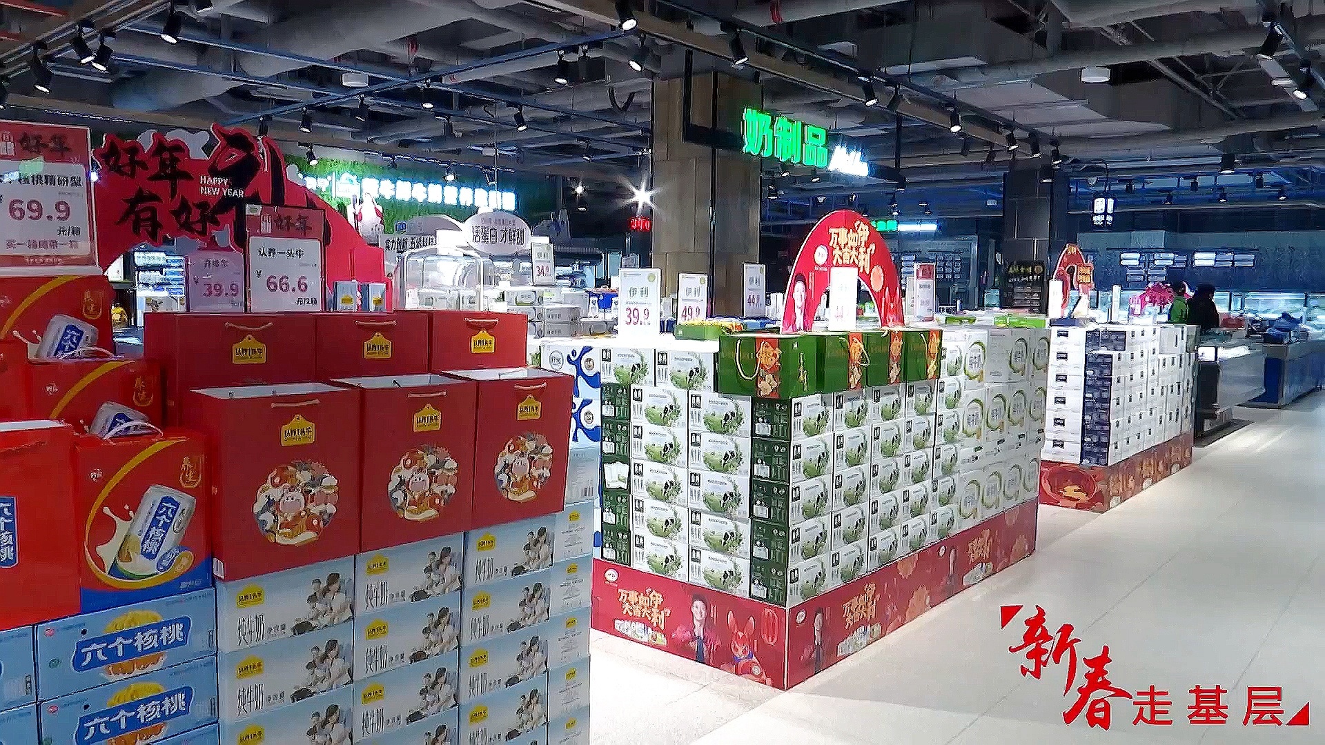 春節臨近,河北省衡水市安平縣的各大超市的年味兒也越來越足,節慶商品和禮盒琳瑯滿目,處處洋溢著濃濃的新春佳節氛圍。