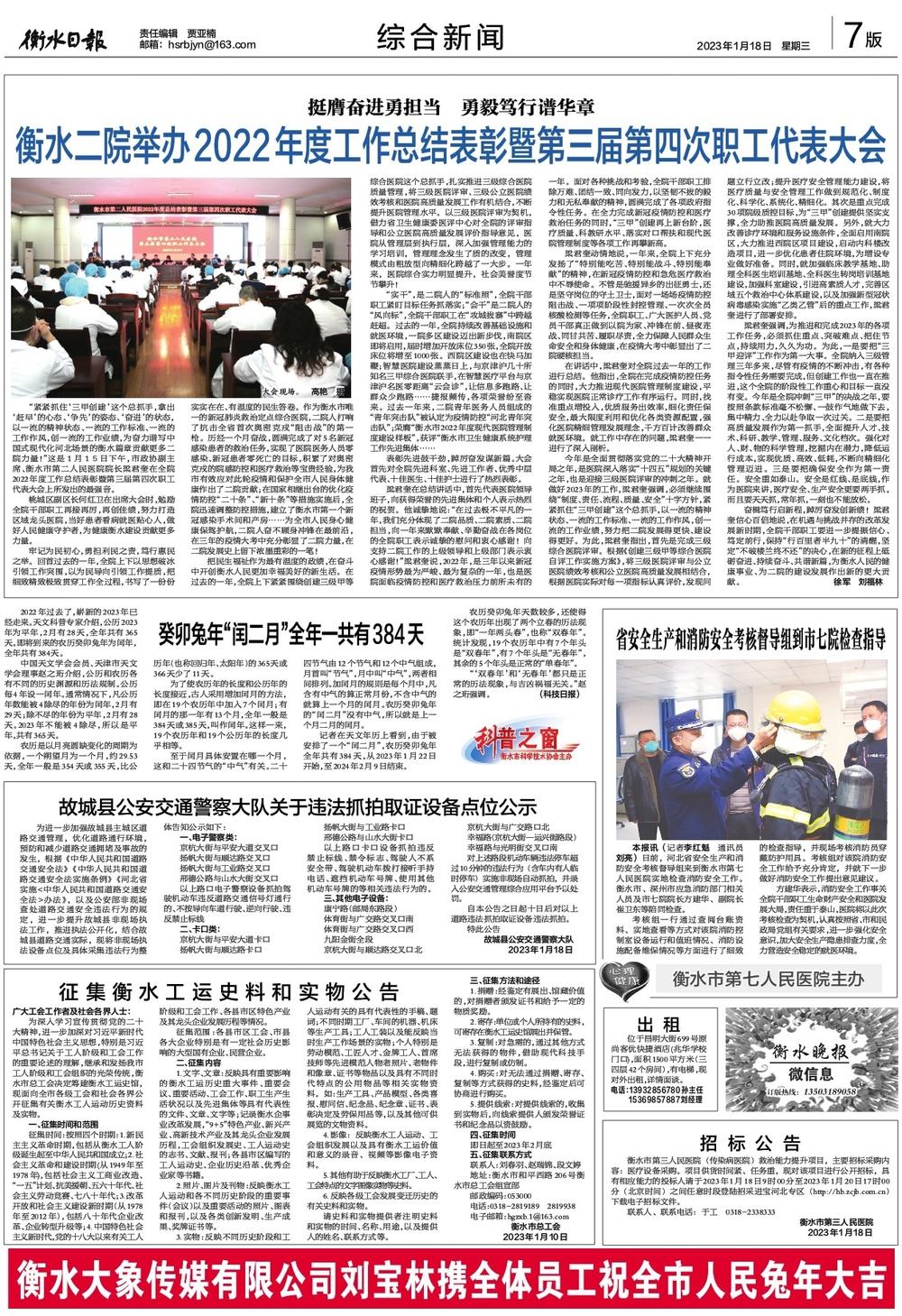 桃城區副區長何紅衛在出席大會時,勉勵全院干部職工再接再厲,再創佳績,努力打造區域龍頭醫院,當好患者看病就醫貼心人,做好人民健康守護者,為健康衡水建設貢獻更多力量。