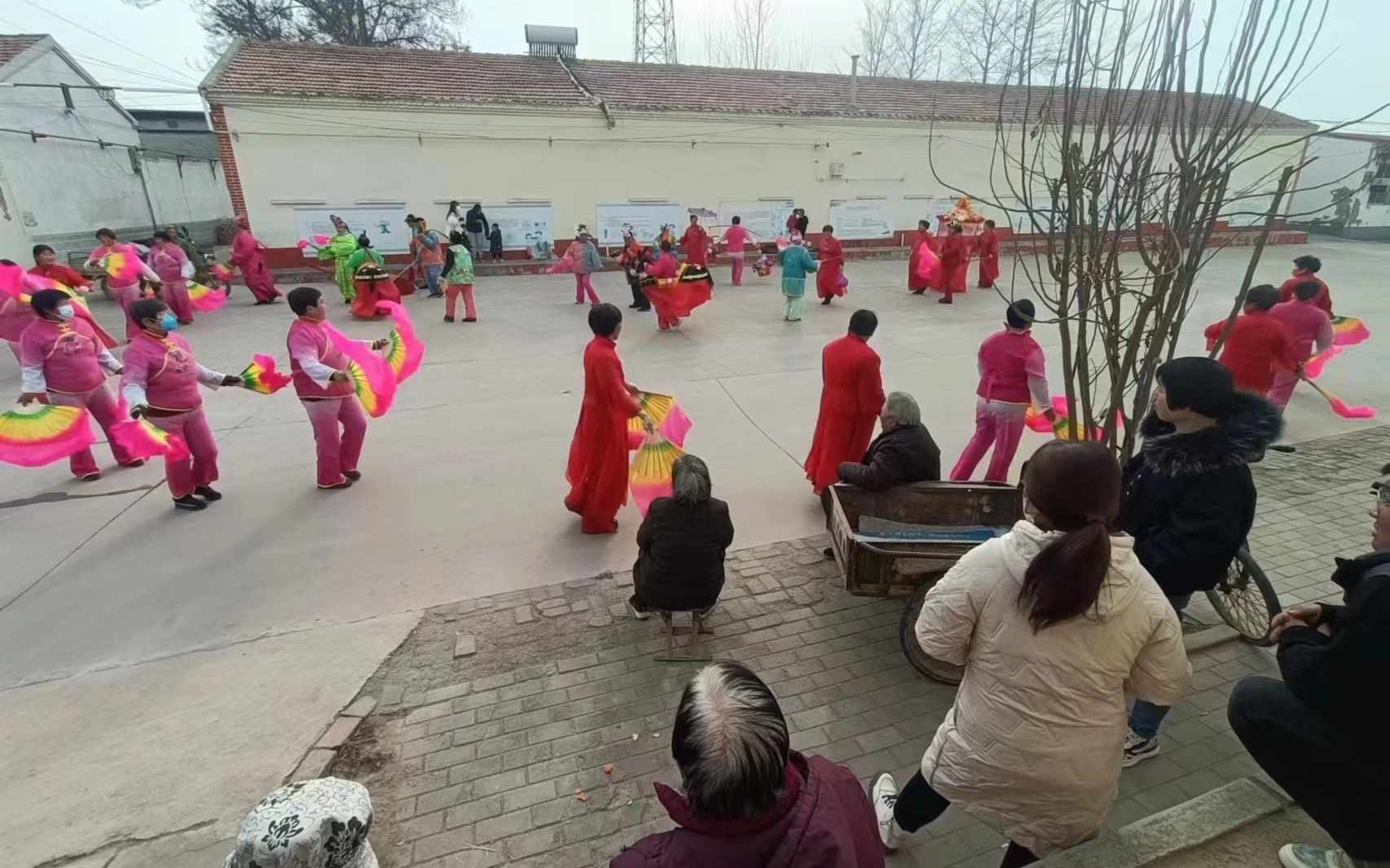 鏗鏘的鑼鼓敲起來,美麗的彩綢舞起來,動人的秧歌扭起來……1月21日,臘月三十,吃過午飯,濱湖新區魏家屯鎮邢家村的文化廣場上便熱鬧起來。
