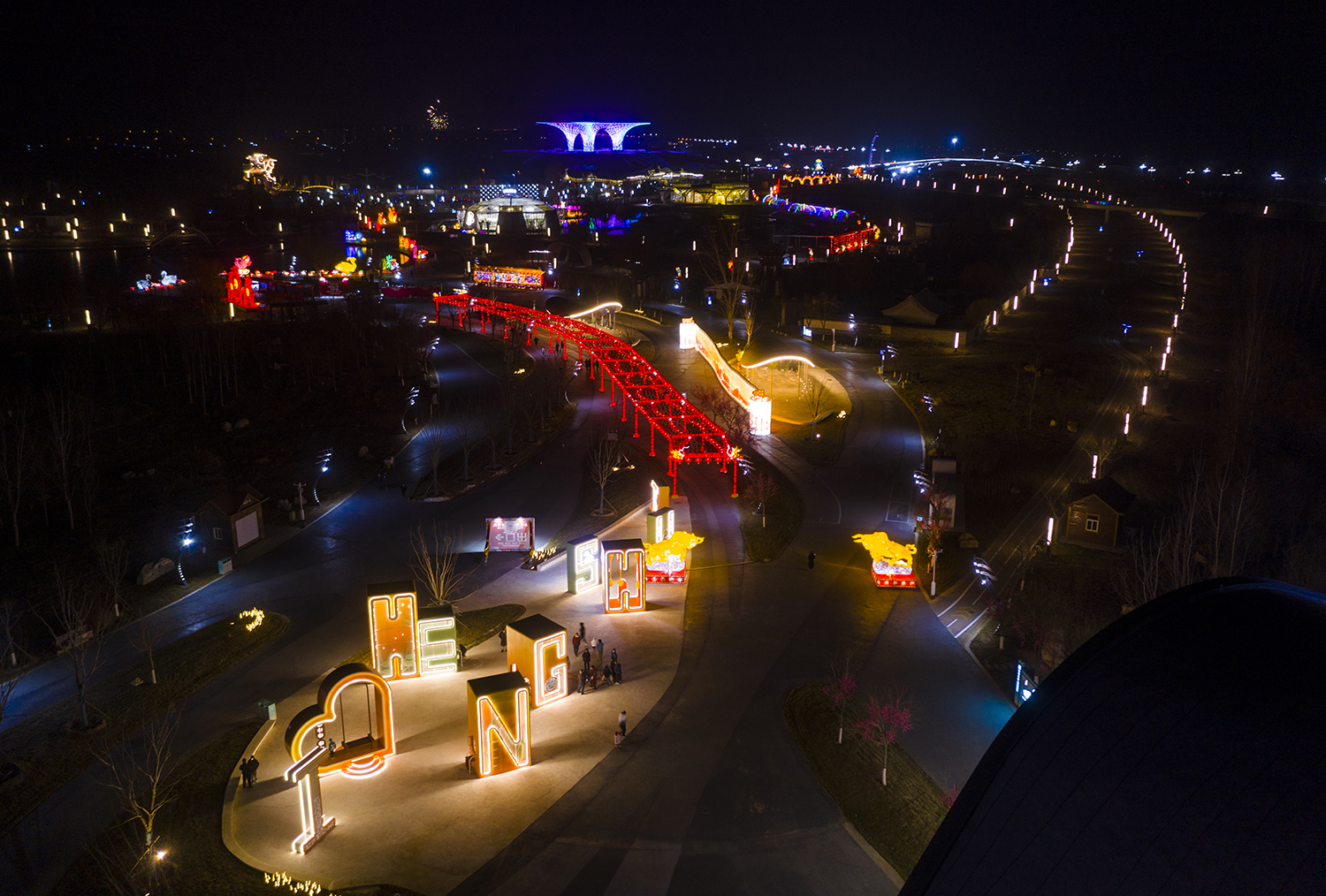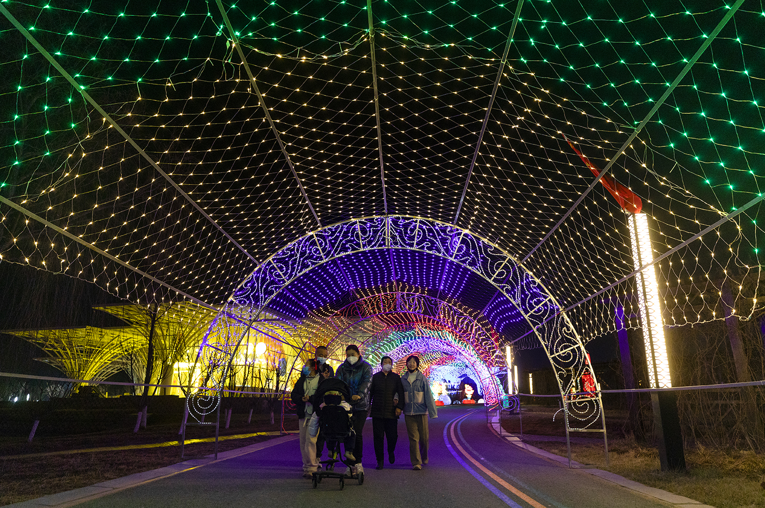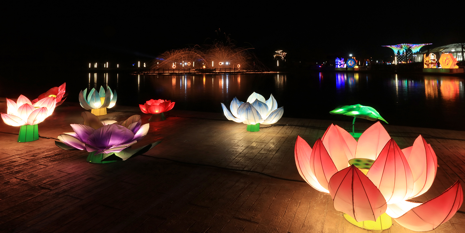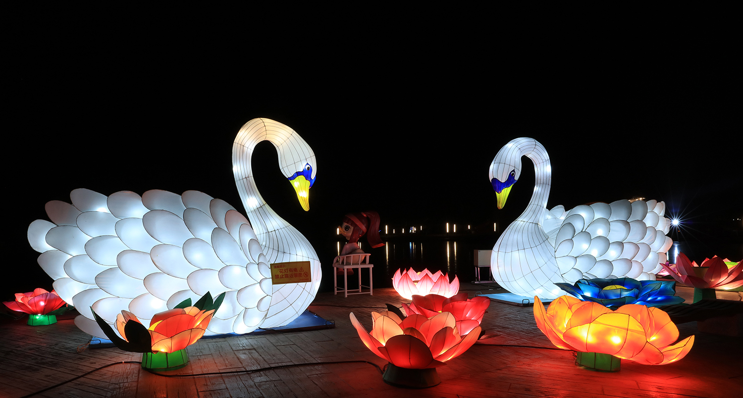 長40米、高8米的兔年迎春門,漂亮的“吉祥兔”,大紅的“春臨門”、耀眼的“中華鼓”,農歷兔年韻味撲面而來;氣宇軒昂,神龍飛騰、巨浪翻轉的九龍壁花燈,給人以傳統(tǒng)文化的震撼之美;鯉魚戲蓮、年年有魚(春夏秋冬系列)、鴛鴦百年好合、天鵝之戀等花燈依水而設,寓意著年年富裕、幸福美滿;栩栩如生的十二生肖燈,烘托出濃烈的喜慶氛圍……人們置身于燈光的海洋里,切身感受光影變幻的魅力。