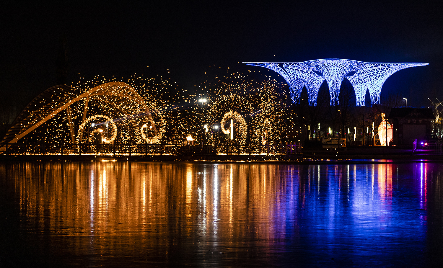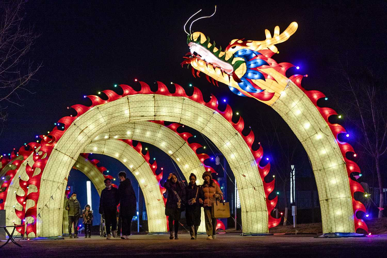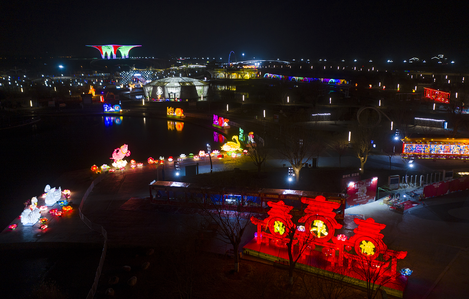 長40米、高8米的兔年迎春門,漂亮的“吉祥兔”,大紅的“春臨門”、耀眼的“中華鼓”,農歷兔年韻味撲面而來;氣宇軒昂,神龍飛騰、巨浪翻轉的九龍壁花燈,給人以傳統(tǒng)文化的震撼之美;鯉魚戲蓮、年年有魚(春夏秋冬系列)、鴛鴦百年好合、天鵝之戀等花燈依水而設,寓意著年年富裕、幸福美滿;栩栩如生的十二生肖燈,烘托出濃烈的喜慶氛圍……人們置身于燈光的海洋里,切身感受光影變幻的魅力。