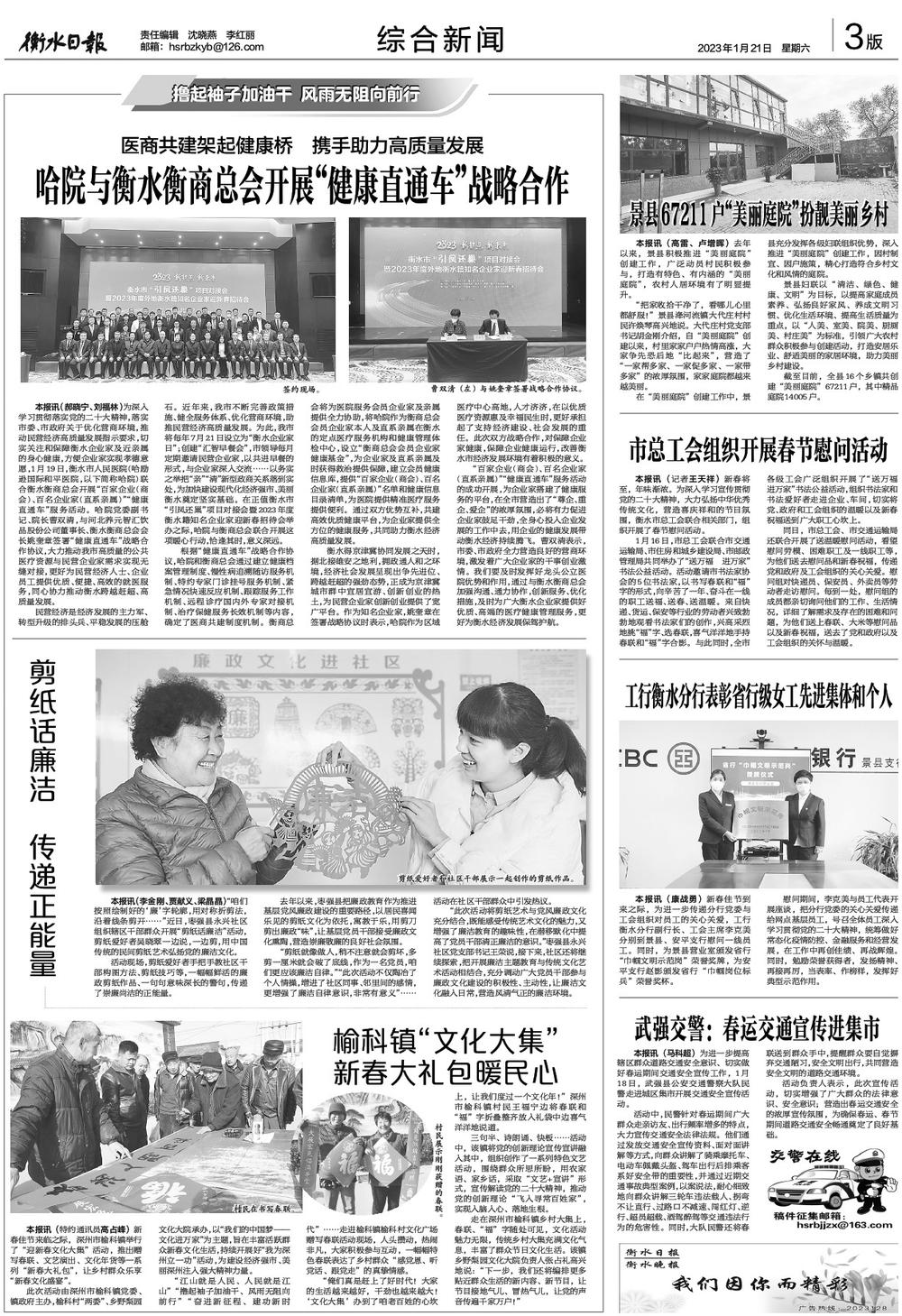 民營經(jīng)濟(jì)是經(jīng)濟(jì)發(fā)展的主力軍、轉(zhuǎn)型升級的排頭兵、平穩(wěn)發(fā)展的壓艙石。近年來,我市不斷完善政策措施、健全服務(wù)體系、優(yōu)化營商環(huán)境,助推民營經(jīng)濟(jì)高質(zhì)量發(fā)展。為此,我市將每年7月21日設(shè)立為“衡水企業(yè)家日”;創(chuàng)建“匯智早餐會”,市領(lǐng)導(dǎo)每月定期邀請民營企業(yè)家,以共進(jìn)早餐的形式,與企業(yè)家深入交流……以務(wù)實之舉把“親”“清”新型政商關(guān)系落到實處,為加快建設(shè)現(xiàn)代化經(jīng)濟(jì)強(qiáng)市、美麗衡水奠定堅實基礎(chǔ)。在正值衡水市“引鳳還巢”項目對接會暨2023年度衡水籍知名企業(yè)家迎新春招待會舉辦之際,哈院與衡商總會聯(lián)合開展這項暖心行動,恰逢其時,意義深遠(yuǎn)。
