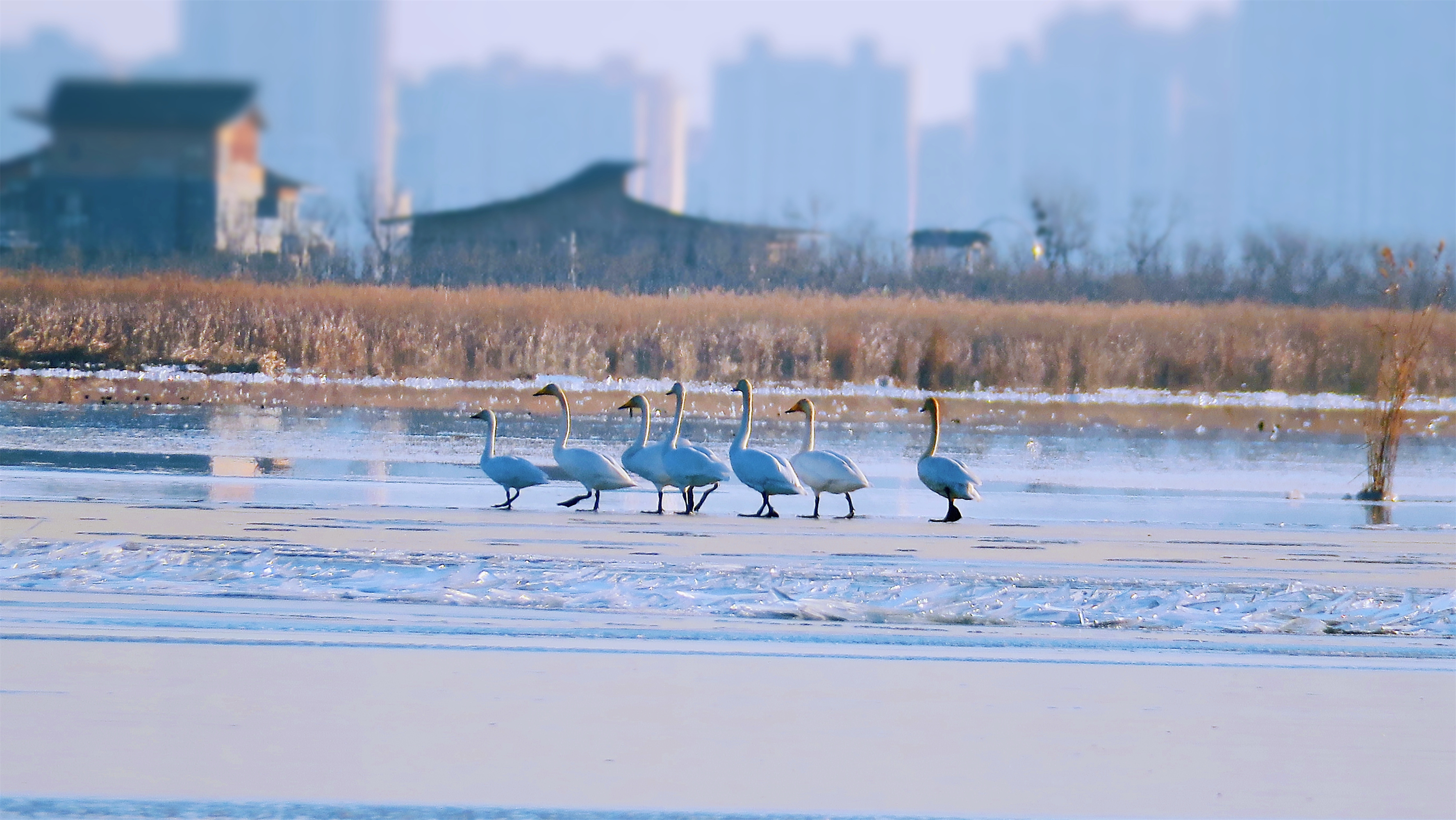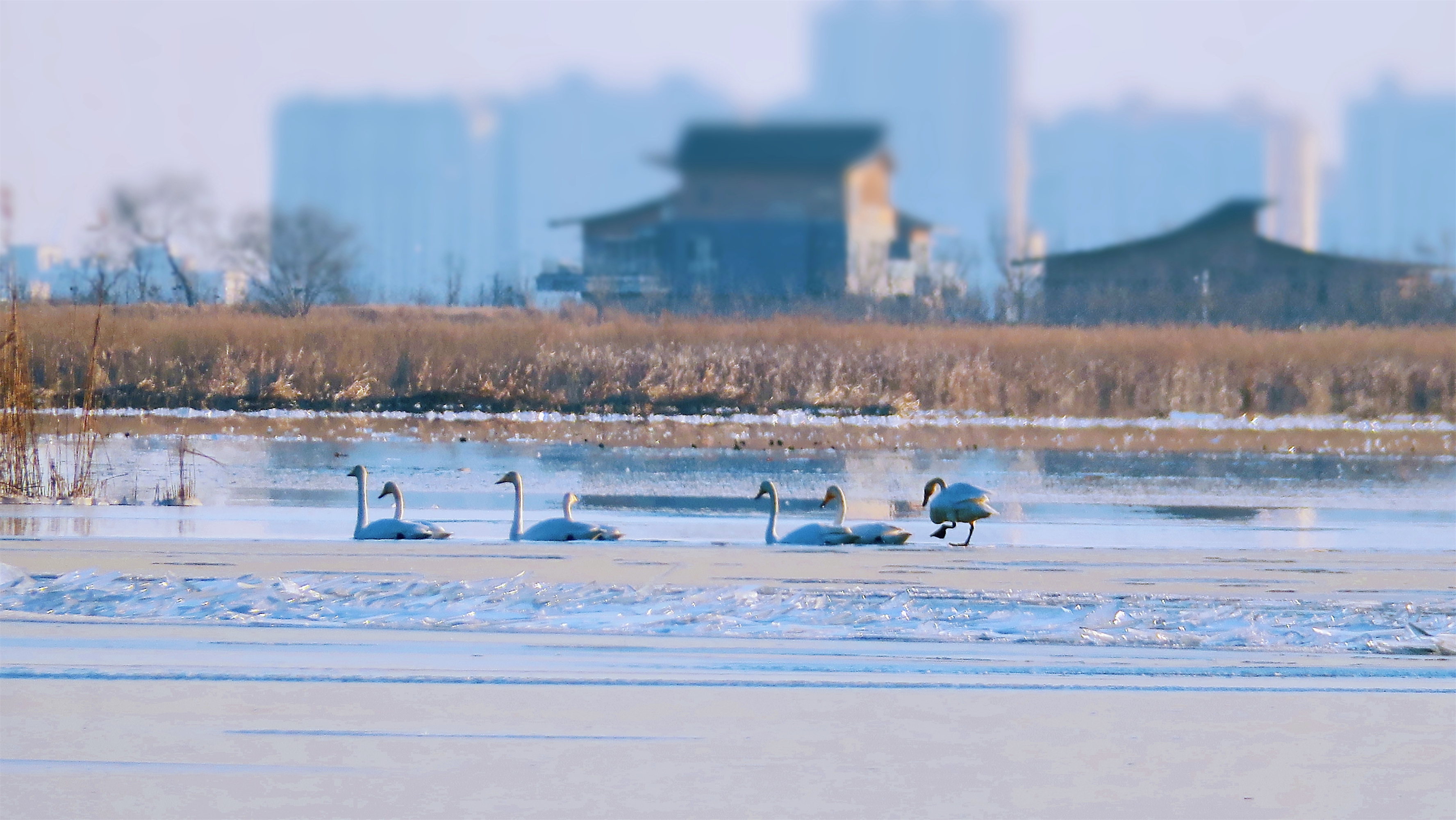春節期間,記者在衡水湖北堤驚喜地發現數只大天鵝的身影,它們或在冰封的湖面上悠閑愜意地散步嬉戲,或在碧藍的湖水中優雅地游弋,勾勒出一幅和諧美麗的生態畫卷。