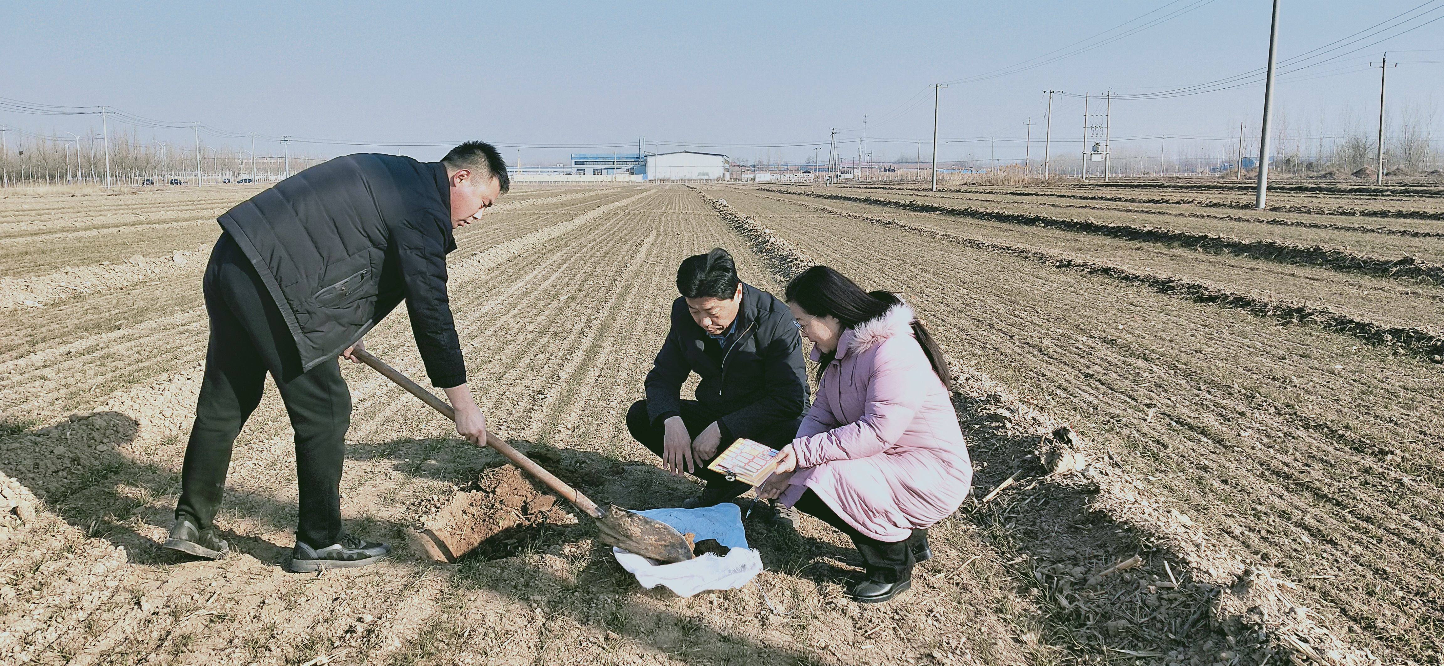農技人員深入田間地頭取土測墑。故城縣融媒體中心供圖