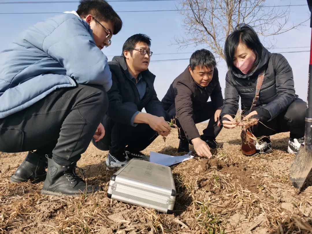 農技人員調查苗情和土壤墑情。武強縣農業農村局供圖