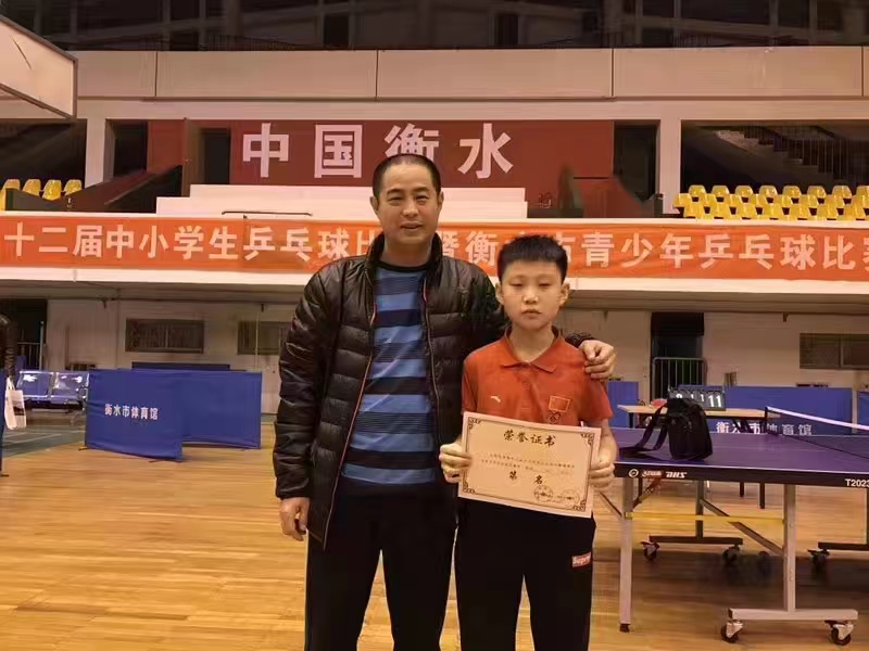 “對啦!太帥啦!漂亮!”對待這些小家伙,只要他們有一點點進步,李愛民都會大聲稱贊和鼓勵,他很快贏得了孩子們的喜歡和家長的信賴。后來,球館的學生越來越多,從30多個增加到50個,再到100多個,教練員也從最初的“光桿司令”發展到如今的5個全職教練。那些被李愛民一手教出來的學生在省苗子調賽以及全市和桃城區組織的各類比賽中像是一匹匹小黑馬打出了好成績,在2019年衡水市全運會上,他的學生一舉拿下了女子丙組團體第一名和單打冠、亞軍。