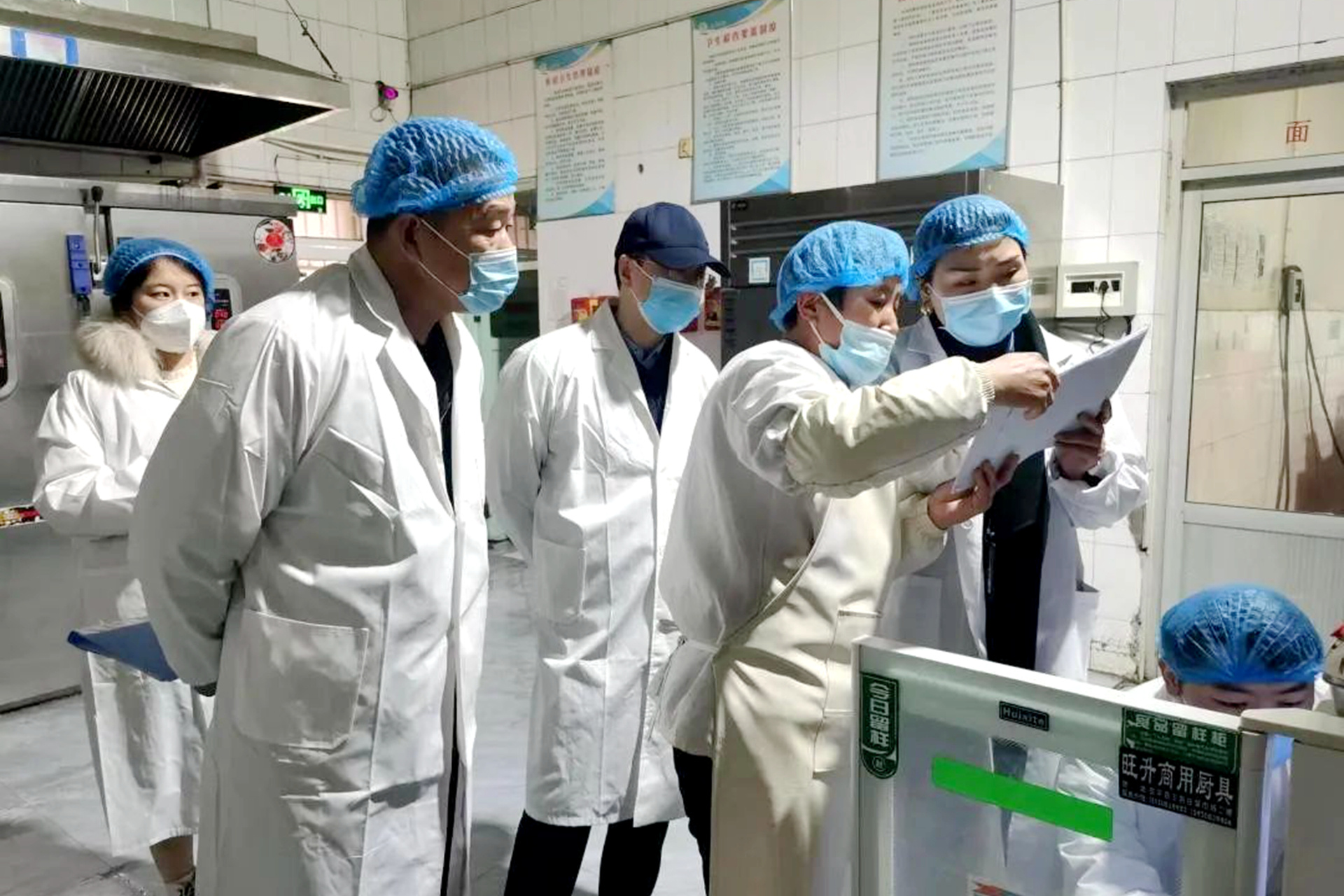 檢查人員檢查校園食堂安全。安平縣教育局供圖