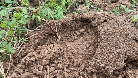 近日,在福清龍江街道小南洋村靠山的一片草地上,有人發現多個紅火蟻巢穴。這些蟻窩外觀看著是一個個褐紅色的小土堆,明顯隆起呈山丘狀,其泥土較松軟,用樹枝撩開表層沙土,可見呈蜂窩狀的內部構造,以及密密麻麻的紅火蟻,讓人頭皮發麻。