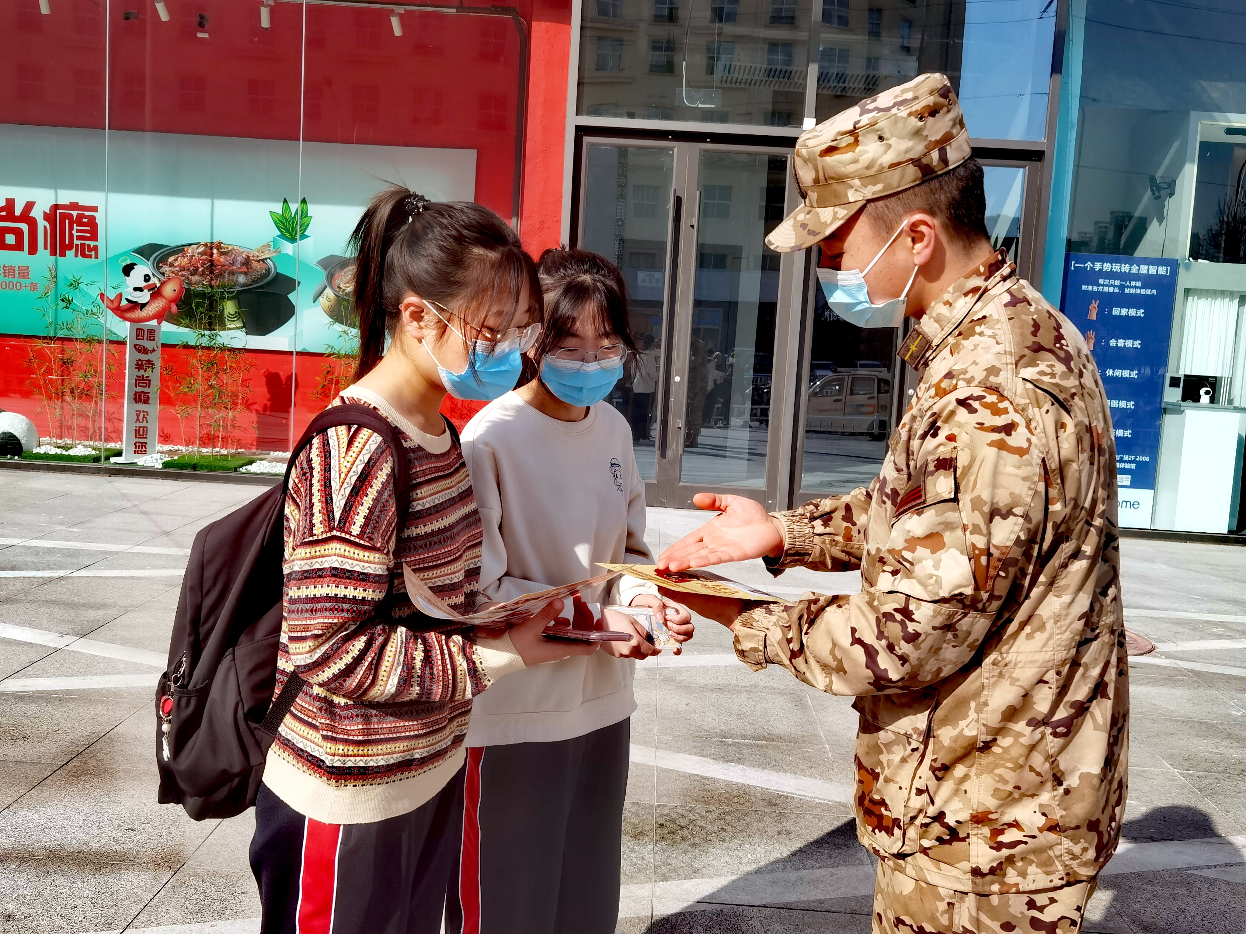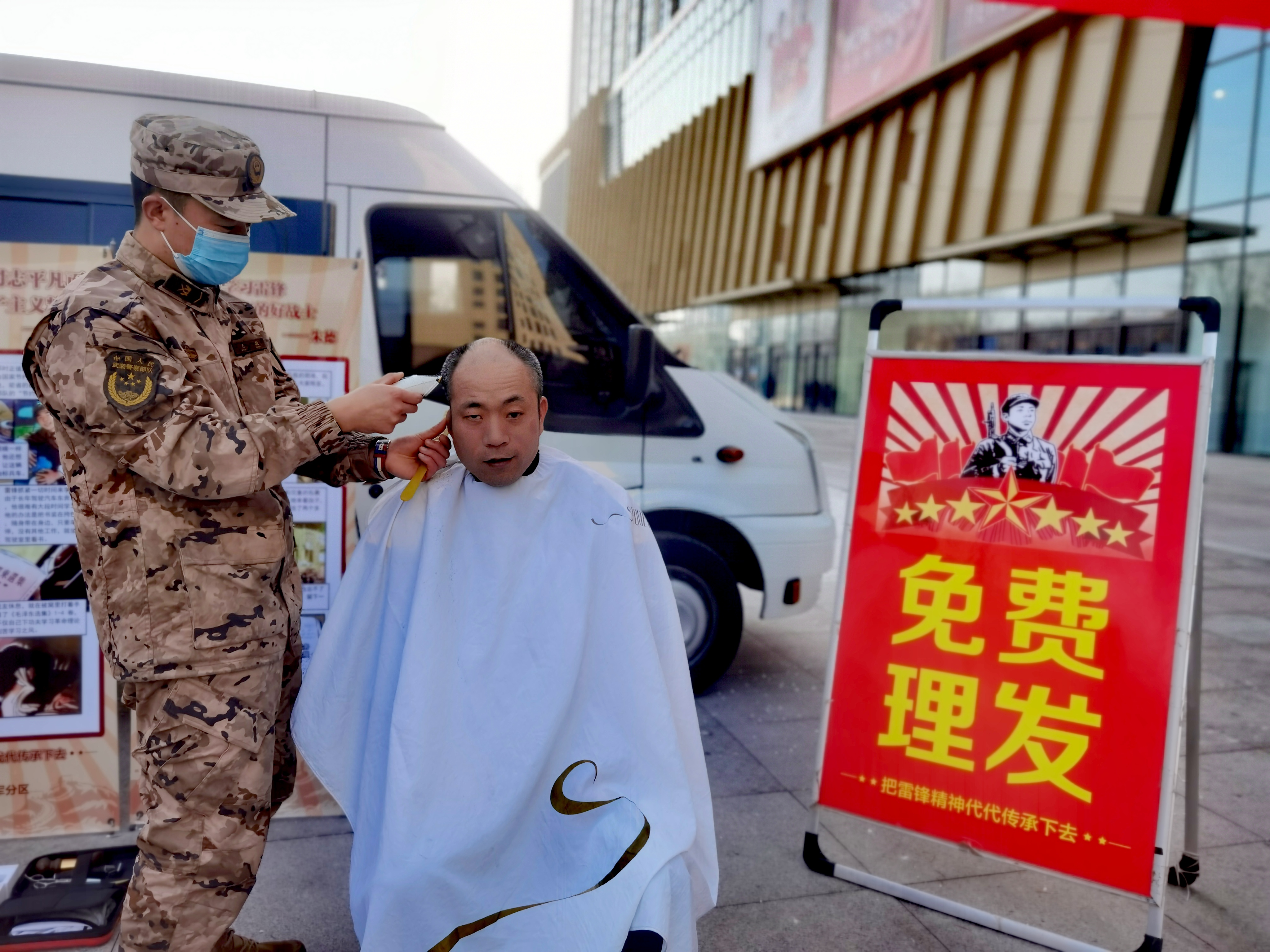 當日上午9時許,官兵們一來到萬達廣場,立刻有序分工,義診、理發、清理附近街道衛生、發放宣傳單頁,一個個忙得不亦樂乎。“大爺,你的血壓稍微有點兒高,平時要注意身體,少喝酒。”官兵們的義診“攤位”尤其受到老年人歡迎,剛剛擺好就有不少人前來排隊。負責義診的官兵細心地為老人們測量血壓、心率等,并按照大家的身體情況簡單開方,贈送藥品。“雷鋒精神傳到年輕一代這兒,形式更加靈活了,你別說,他們這理發手藝還真不賴!” 剛剛接受完義務理發服務的雷先生坦言,感覺到了溫暖和關愛,他不由自主地哼唱起歌兒來,“學習雷鋒好榜樣……”熟悉的旋律引得路人們紛紛跟唱,濃厚的軍民情誼在現場彌漫開來。