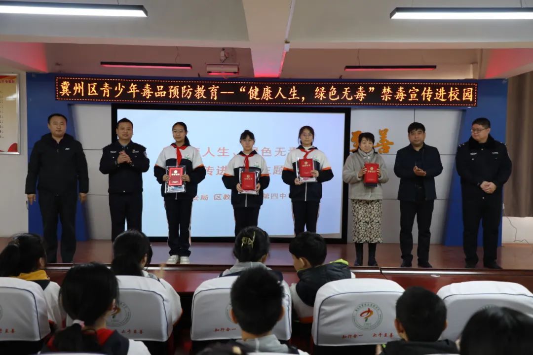 近日,為提高青少年自覺抵制毒品的良好意識,衡水市冀州區(qū)公安局走進(jìn)第四中學(xué),開展了以“健康人生,綠色無毒”為主題的禁毒宣傳教育活動。