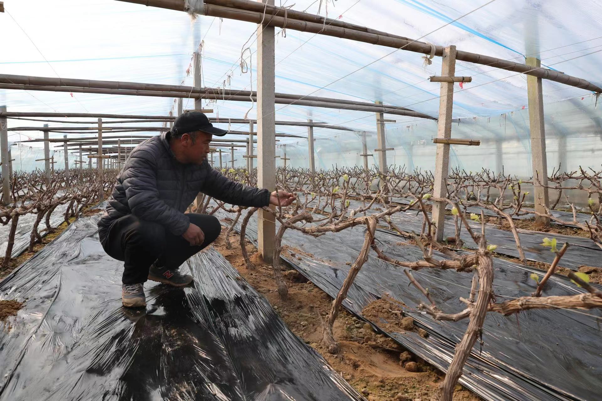 3月2日早8時,棗強縣王常鄉前王常村村民鹿文峰像往常一樣走進自家的暖棚,合上電閘,等待卷簾機慢慢將覆蓋在溫室上的保溫被卷至棚頂,隨后開始查看大棚的溫度和濕度,對破損的棚膜及時做好維護,“眼下,正是大棚葡萄管理的關鍵時期,水、肥和溫度、通風哪樣都不能疏忽。”