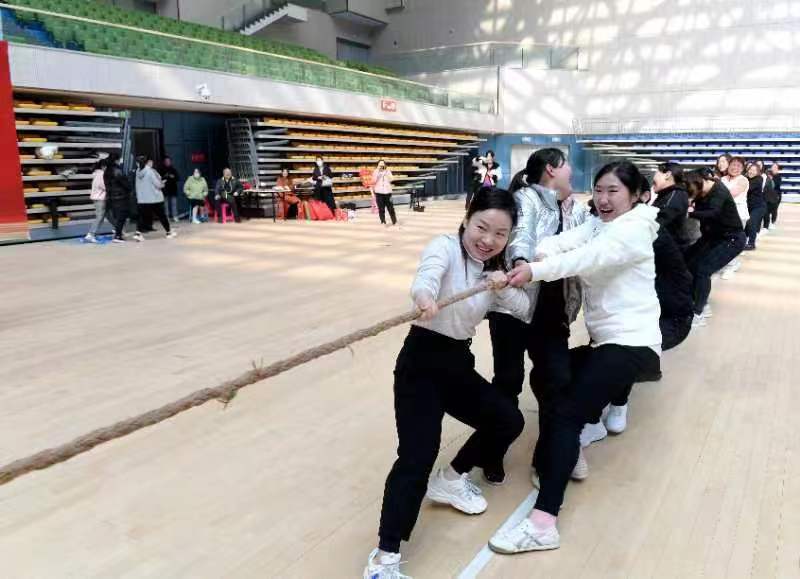 這次活動(dòng)由一分鐘計(jì)時(shí)跳繩、乒乓球拍托球走、拔河比賽、籃球夾球走、羽毛球拍托球走五部分組成,有64名女教師參加。活動(dòng)中大家你追我趕、笑聲陣陣、魅力綻放,將團(tuán)結(jié)進(jìn)取、積極向上的力量展現(xiàn)得淋漓盡致。女教師們?cè)诔錆M(mǎn)激情的氣氛中感受著節(jié)日里運(yùn)動(dòng)帶給她們的快樂(lè)。
