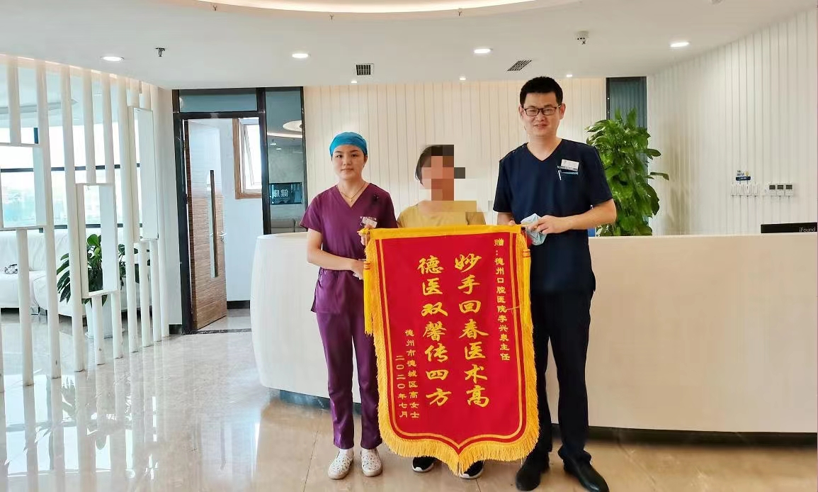 患者給業(yè)務(wù)院長(zhǎng)(右一)李興泉贈(zèng)送錦旗