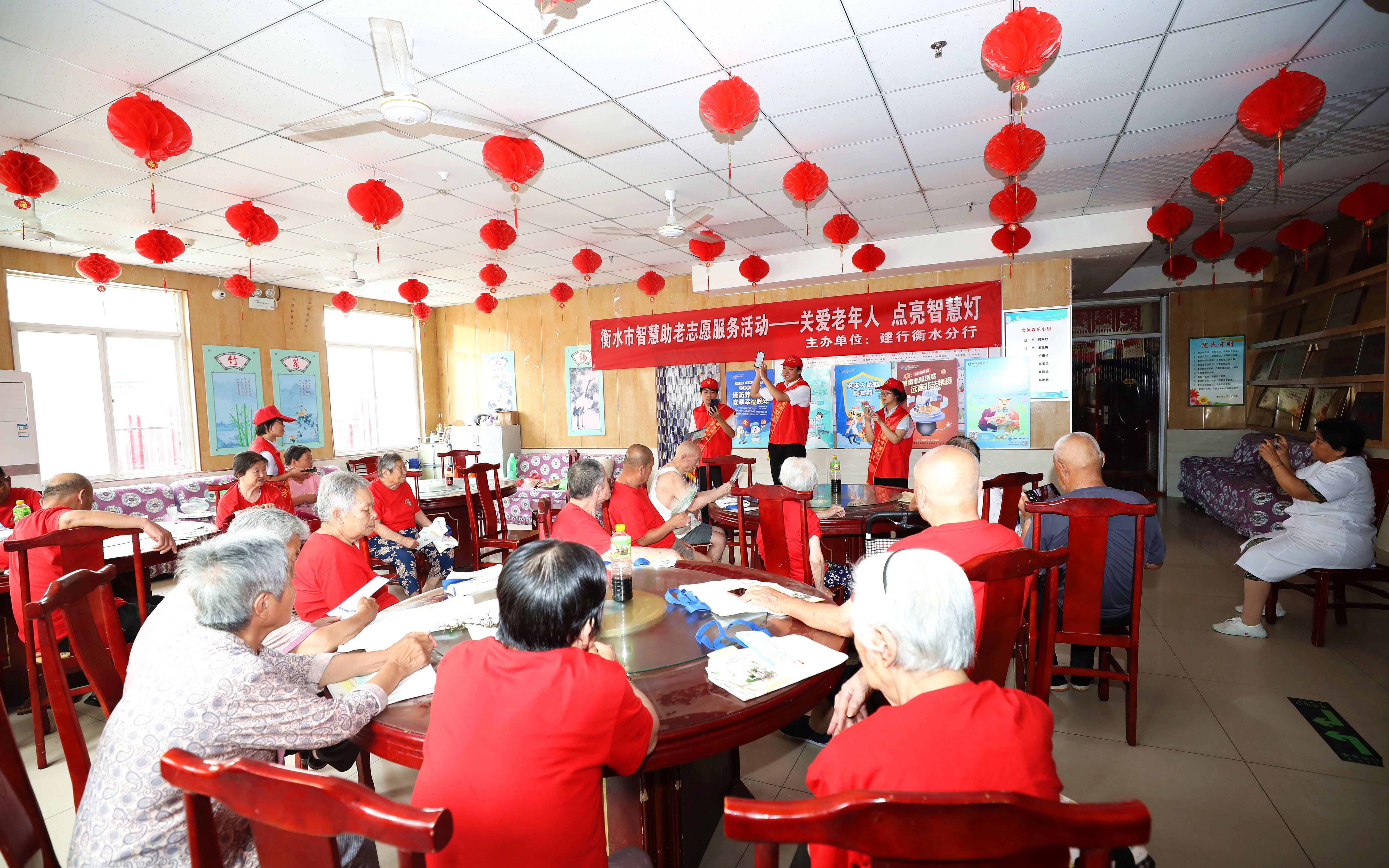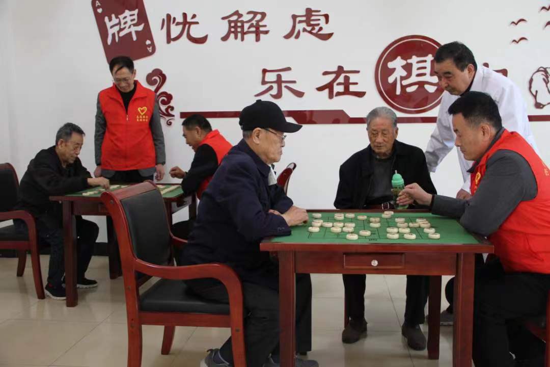 表演結束后,在棋牌室里,志愿者們和老人們下起了象棋,現場其樂融融、和諧溫馨,讓老人們感受到社會大家庭的溫暖。