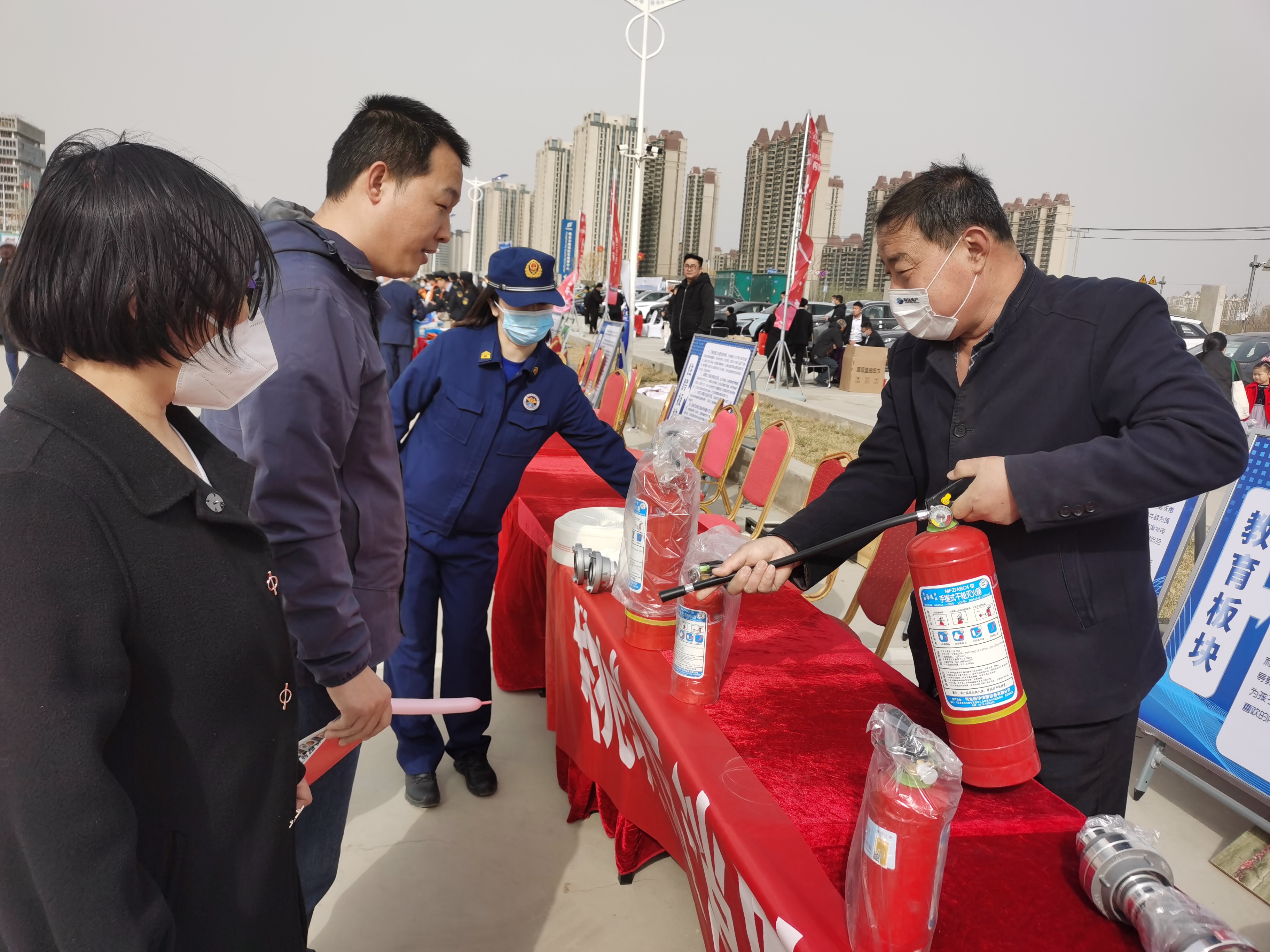 活動中,“藍朋友”詳細講解、現場示范。大隊通過設立咨詢臺、擺放展板等形式,面對面地向過往群眾展示消防產品的功能、使用及日常維護保養方法,尤其是假冒偽劣產品的危害及辨識訣竅。“您看,合格證書、瓶底鋼印、壓力表都是咱們購買滅火器時關注的要點……”“藍朋友”現場逐一展示滅火器的合格證書、瓶底的鋼印、滅火器的壓力表,讓群眾直觀了解真假消防產品的區別;同時,發放《消防產品辨別畫冊》《衡水市家庭防火指南》等消防宣傳資料,講授火場自救逃生知識和技能,不斷提高群眾的法治觀念和火災應急處置能力。