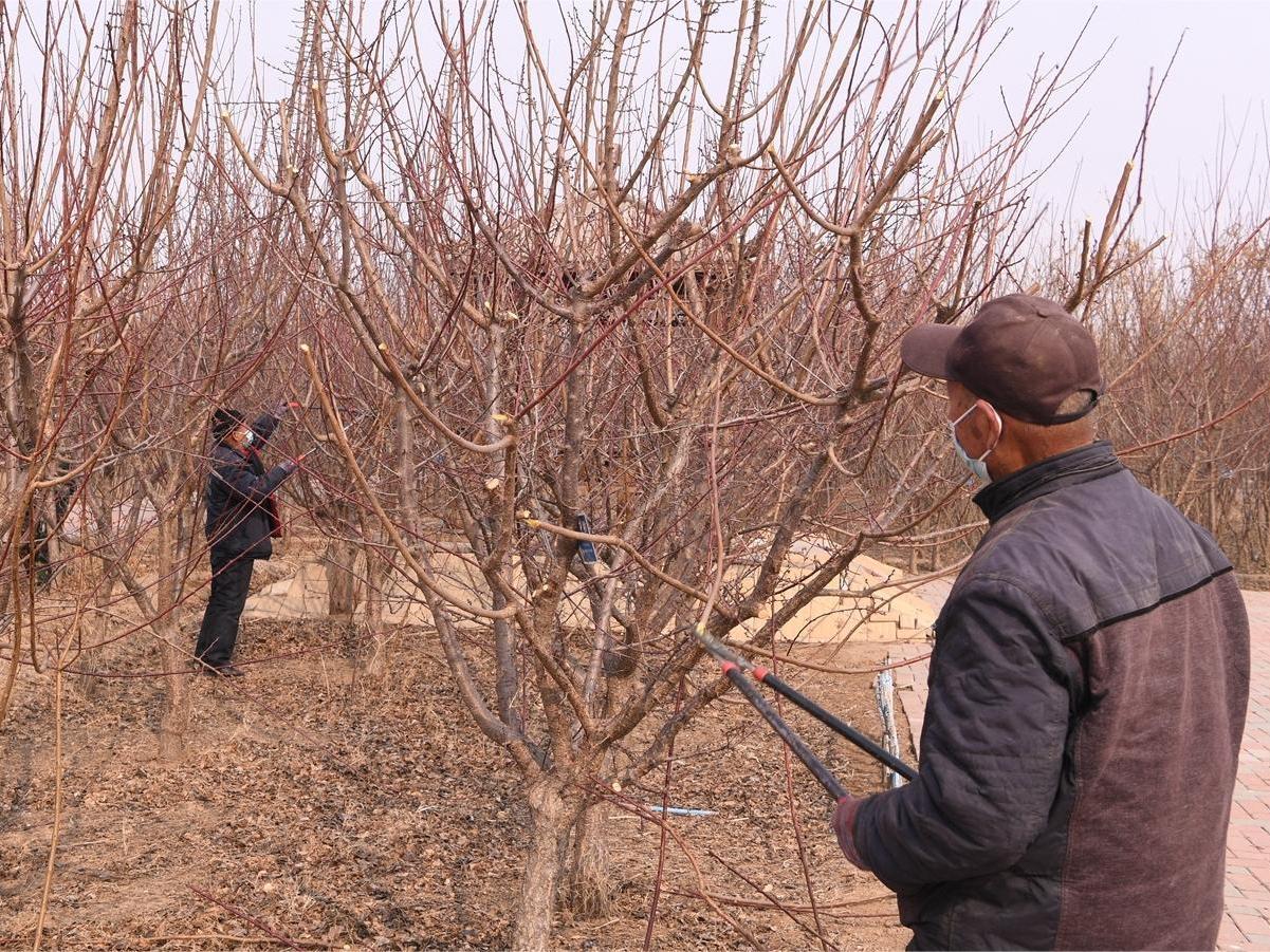 北梅基地內(nèi),工作人員正在修剪梅枝。