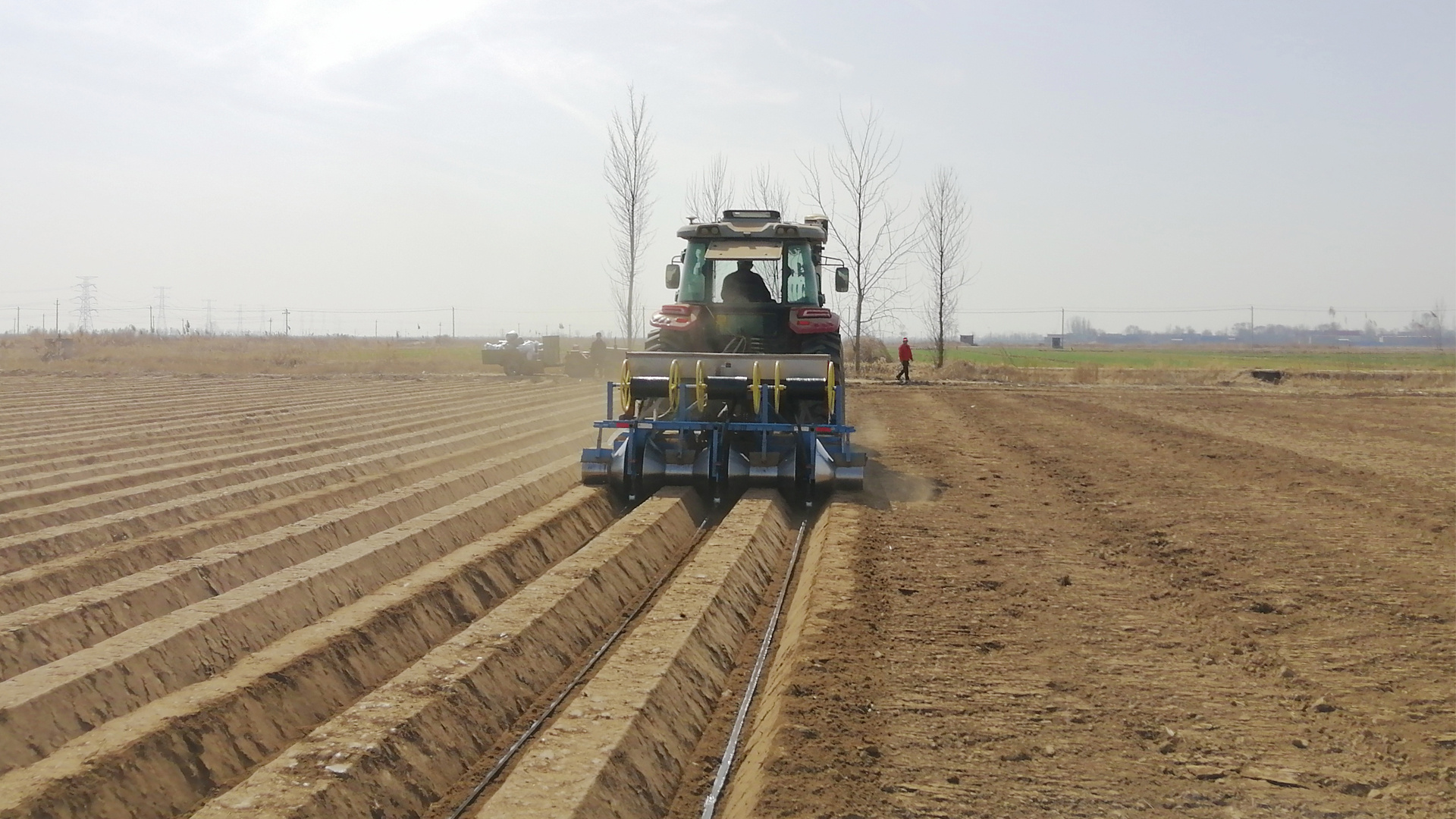 起壟鋪膜施肥一體機(jī)正在作業(yè)。李亞喃 攝
