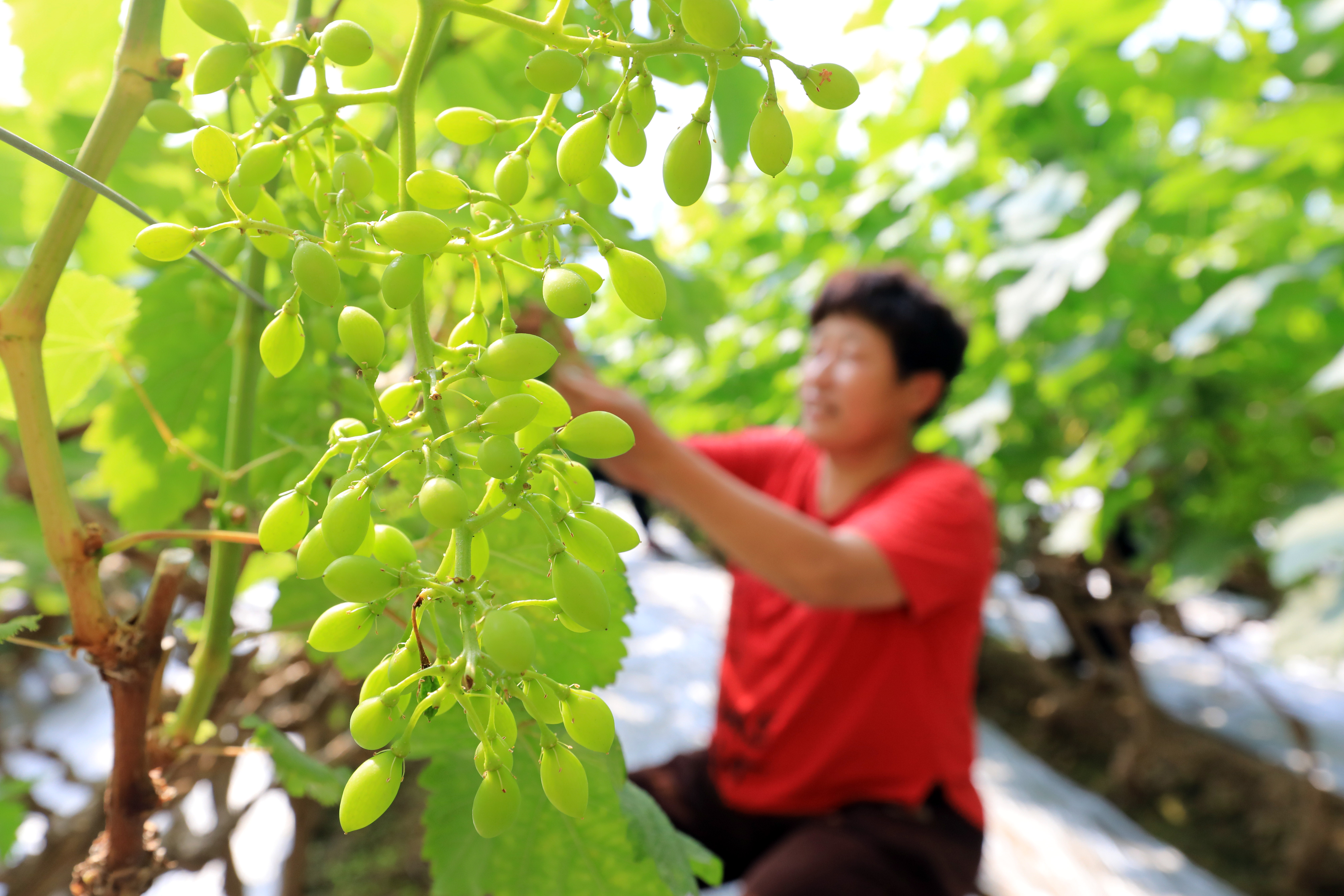 饒陽縣河北新饒農業科技有限公司員工正在對設施葡萄進行種植管理。