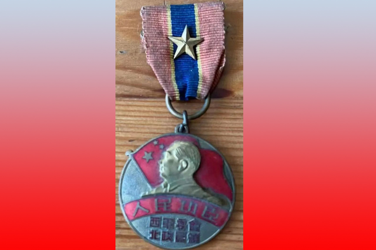 劉東起獲得的人民功臣獎章。全國第一個農村黨支部紀念館供圖