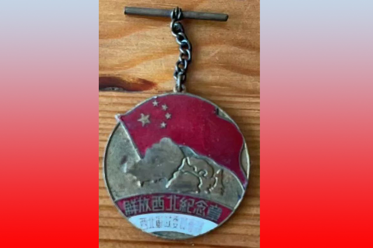 劉東起榮獲的解放西北紀念章。全國第一個農村黨支部紀念館供圖
