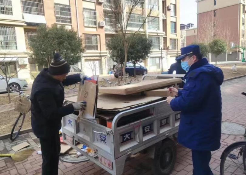 消防救援人員進社區向群眾宣傳消防安全知識。故城縣消防救援大隊供圖