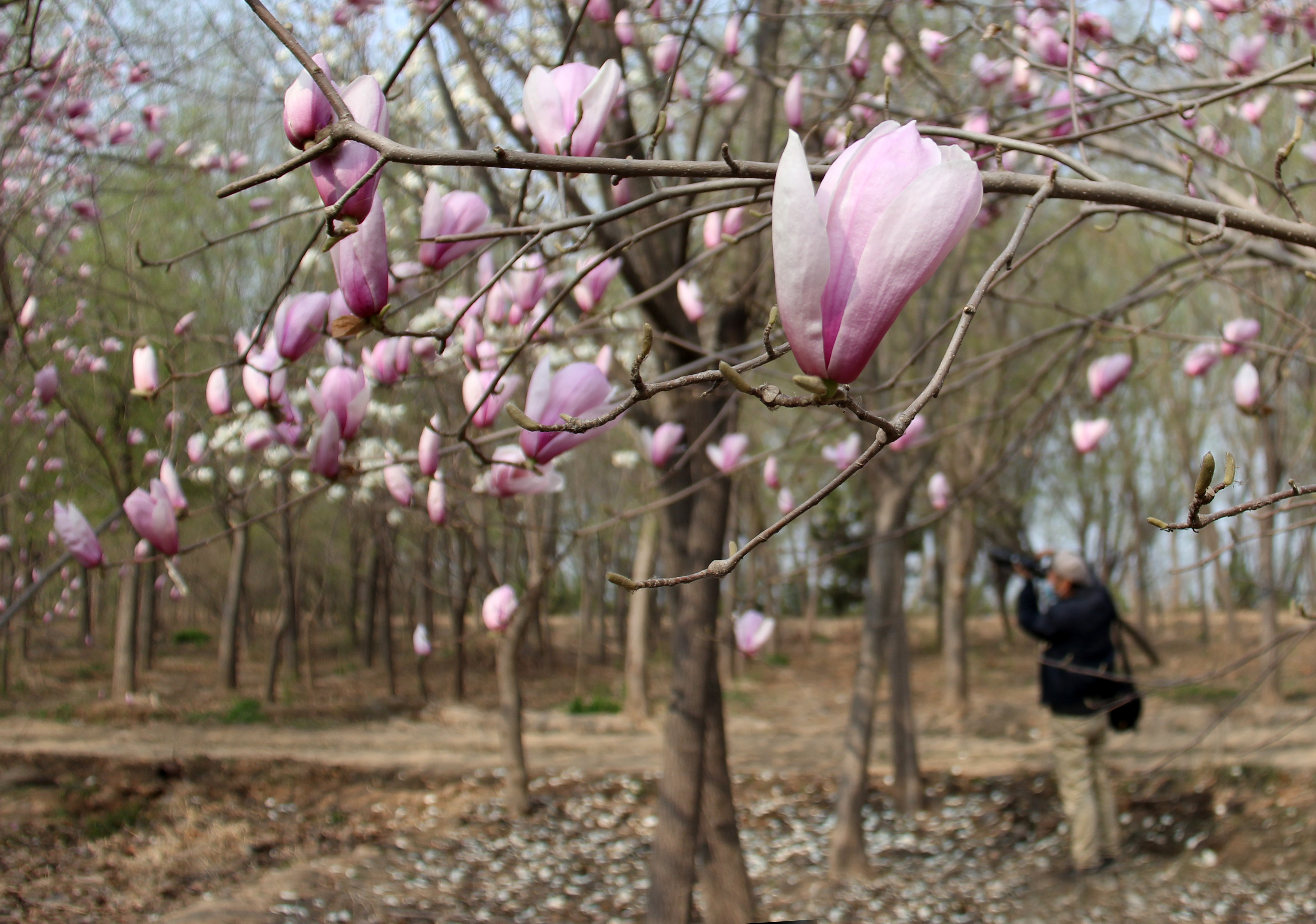 雖然有的還是花骨朵的狀態,但是大家抑制不住拍照打卡的熱情?!斑@里的花太漂亮了!來到戶外,整個人心情都不一樣了?!睆埮啃χf。