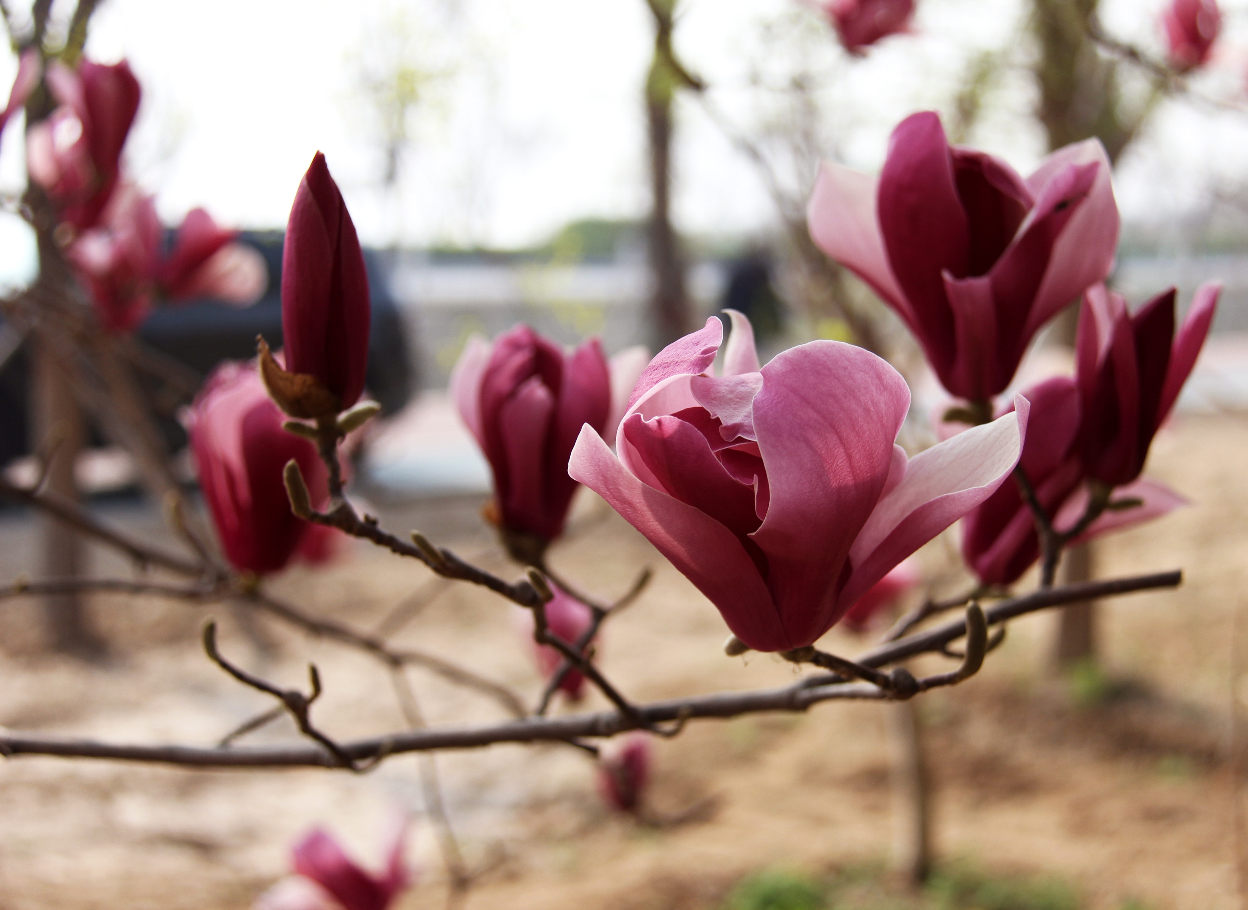 走近這片玉蘭花,人們感覺好像走到“畫”的世界。站在樹下,凝神靜氣,仔細觀賞,玉蘭花的花瓣為白色,基部帶粉紅色,一陣微風輕輕飄過,緊緊包裹的花心仿佛就要展開一樣,白得嬌媚,白得高貴,白得淡雅,就若亭亭玉立的少女,帶一臉嬌羞,不肯給你看個究竟。