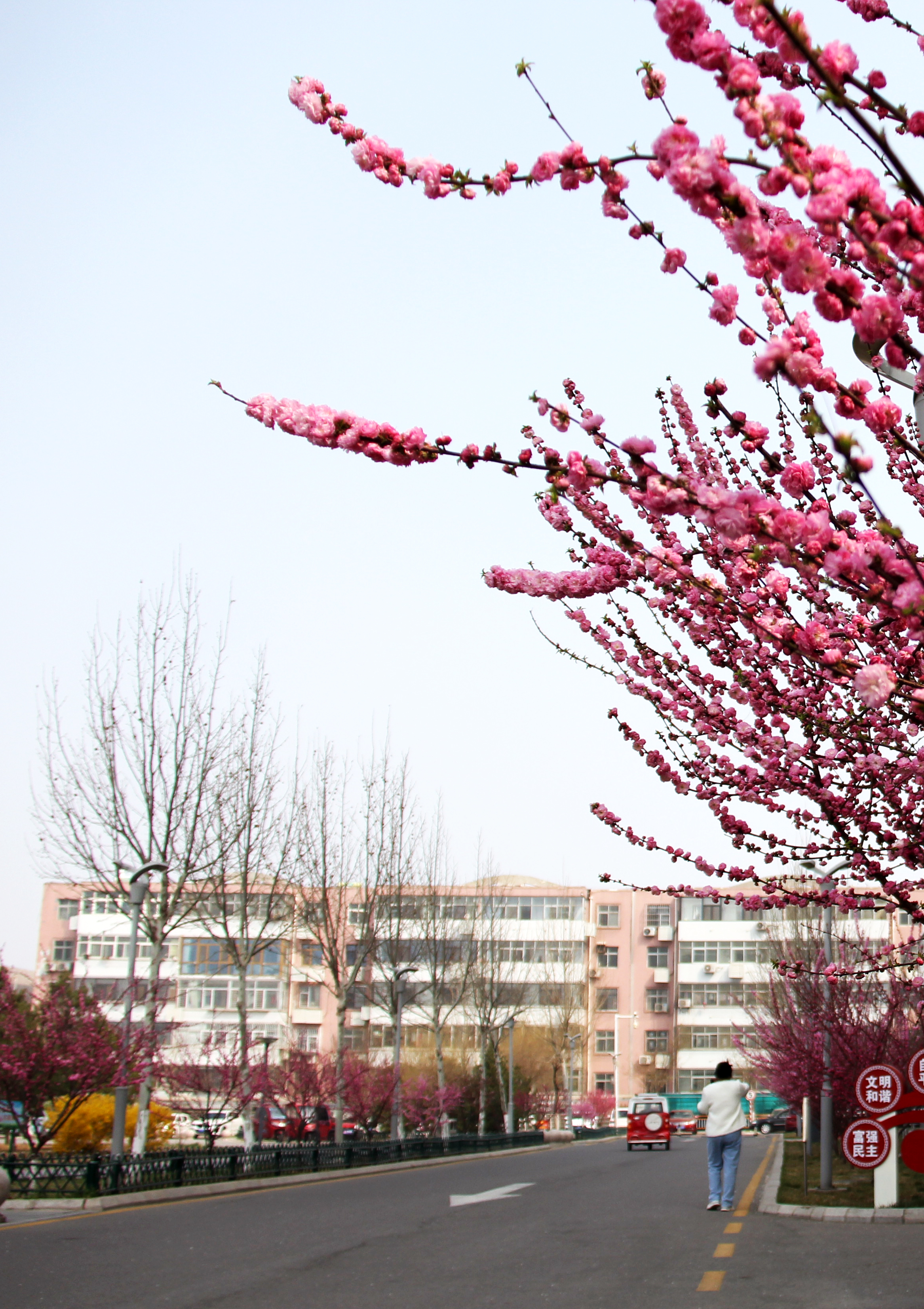3月21日,記者在市區九州廣場看到,一條通往衡水市博物館的小路上,兩側的榆葉梅、紫葉李正在競相綻放,粉色、白色的花朵掛滿枝頭,隨著春風輕盈舞動,花團錦簇,甚是爛漫。