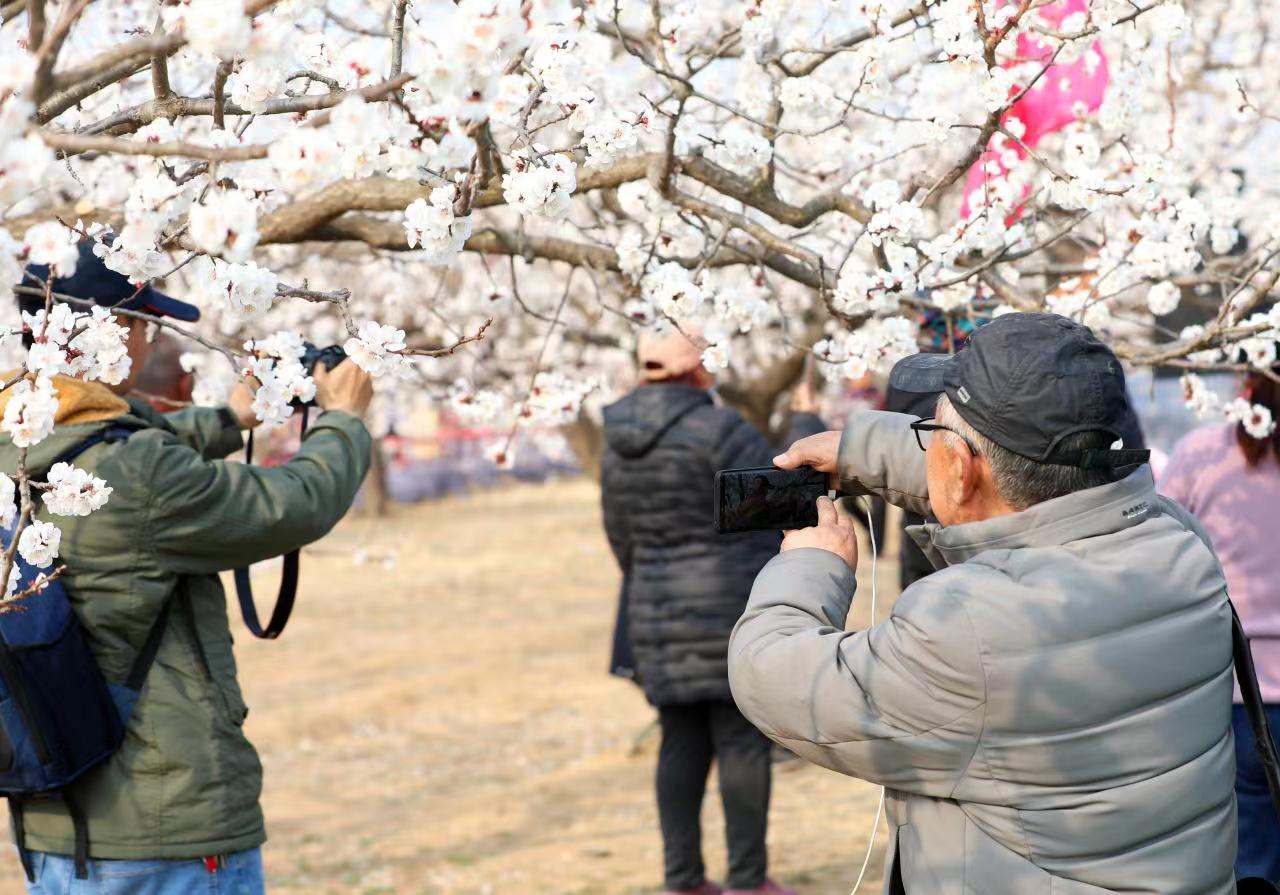 “彭杜過來的,村里都說這邊有個杏花節挺熱鬧,帶著老伴來看看。”來自半壁店村的張大爺說,“有吃的喝的,還有各種小朋友玩的,景色也好看,下周天帶孩子來感受一下。”