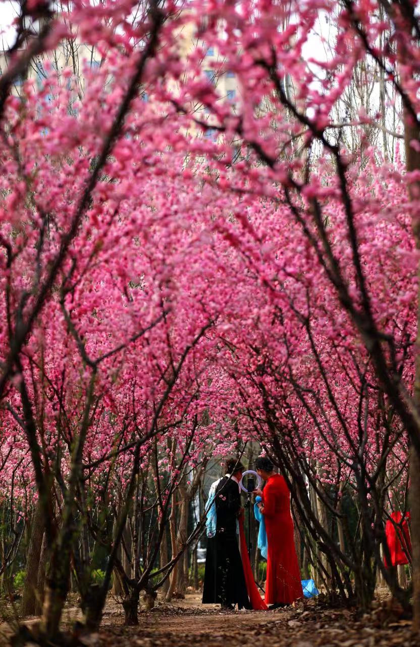 仲春時節,暖意融融。3月18日上午11時,在濱湖新區九州大道養正梅園處,聽,鑼鼓齊鳴;觀,春色滿園;嗅,清香四溢;觸,妖嬈姿態。