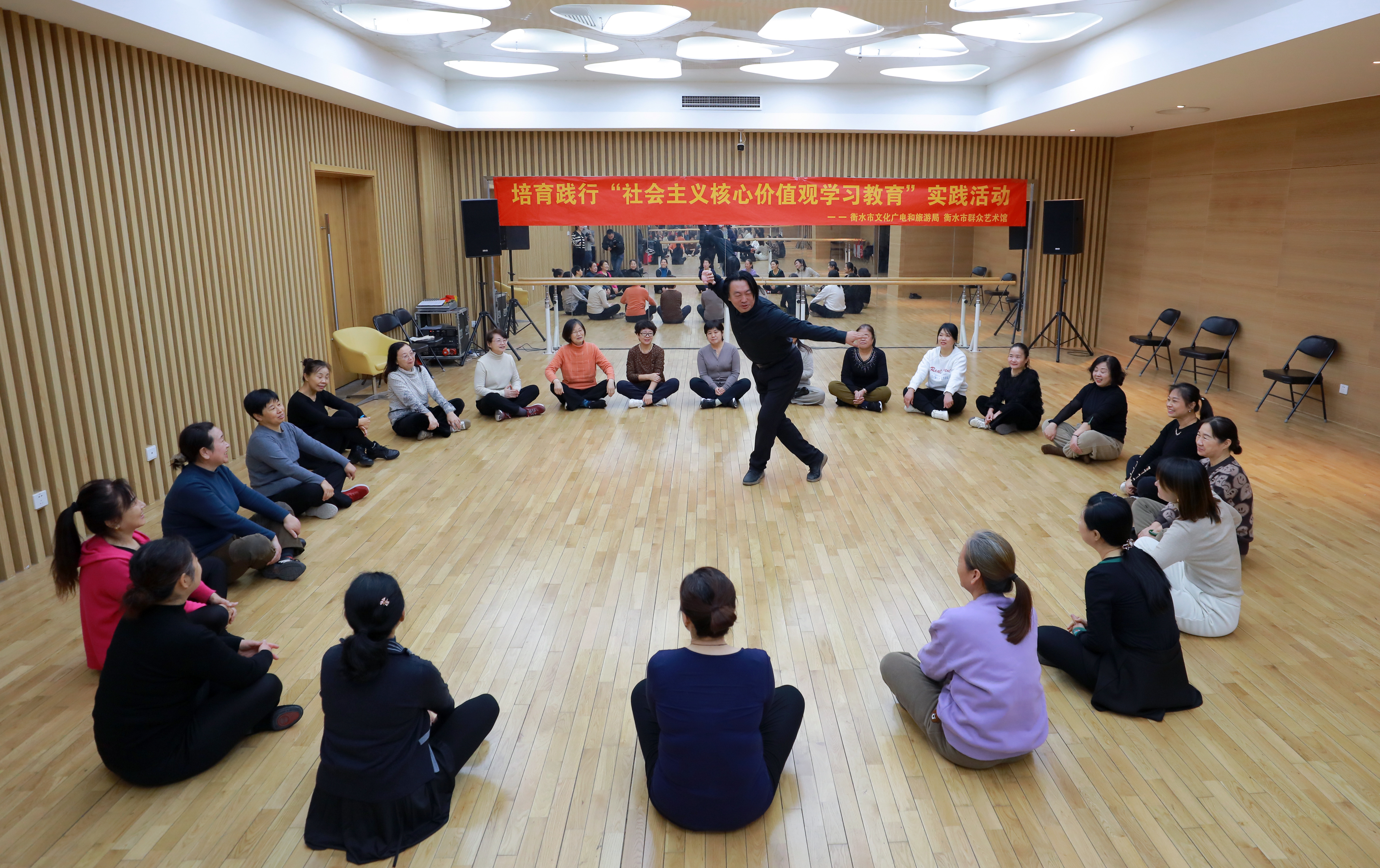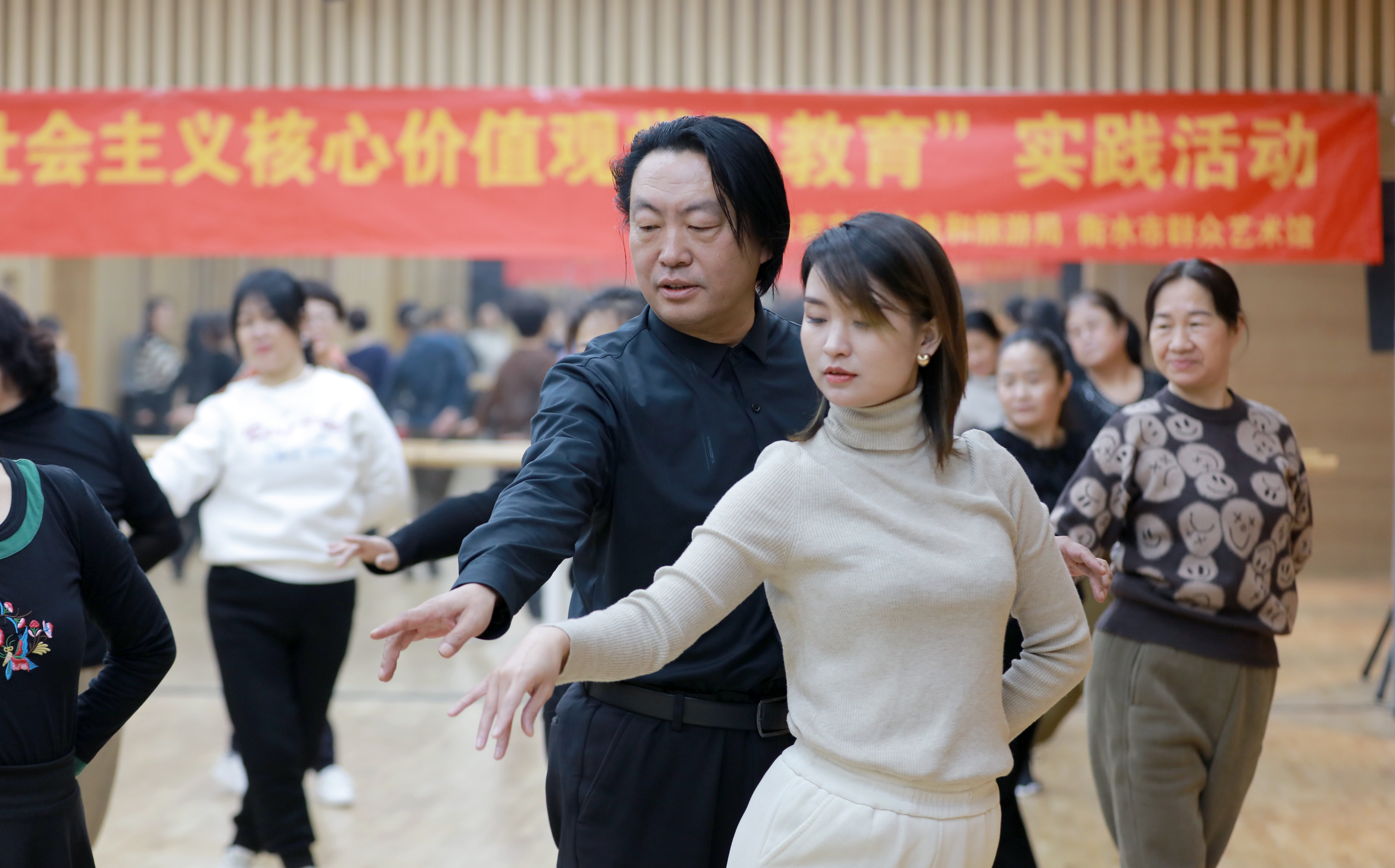 河北省舞蹈家協會副主席鄭廣義為群眾授課。