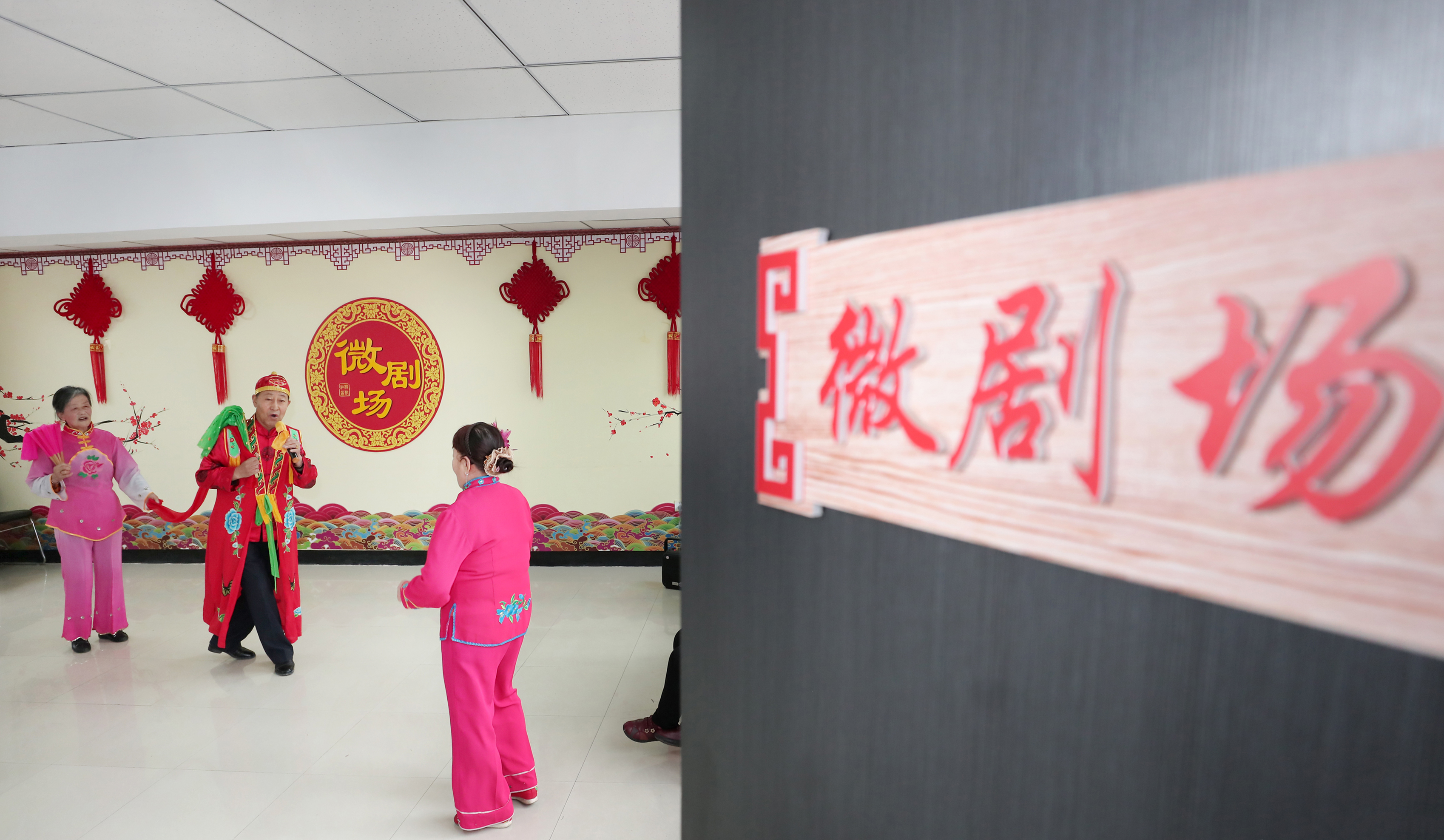 在桃城區河西街道楊樹社區微劇場,居民正在排練節目。