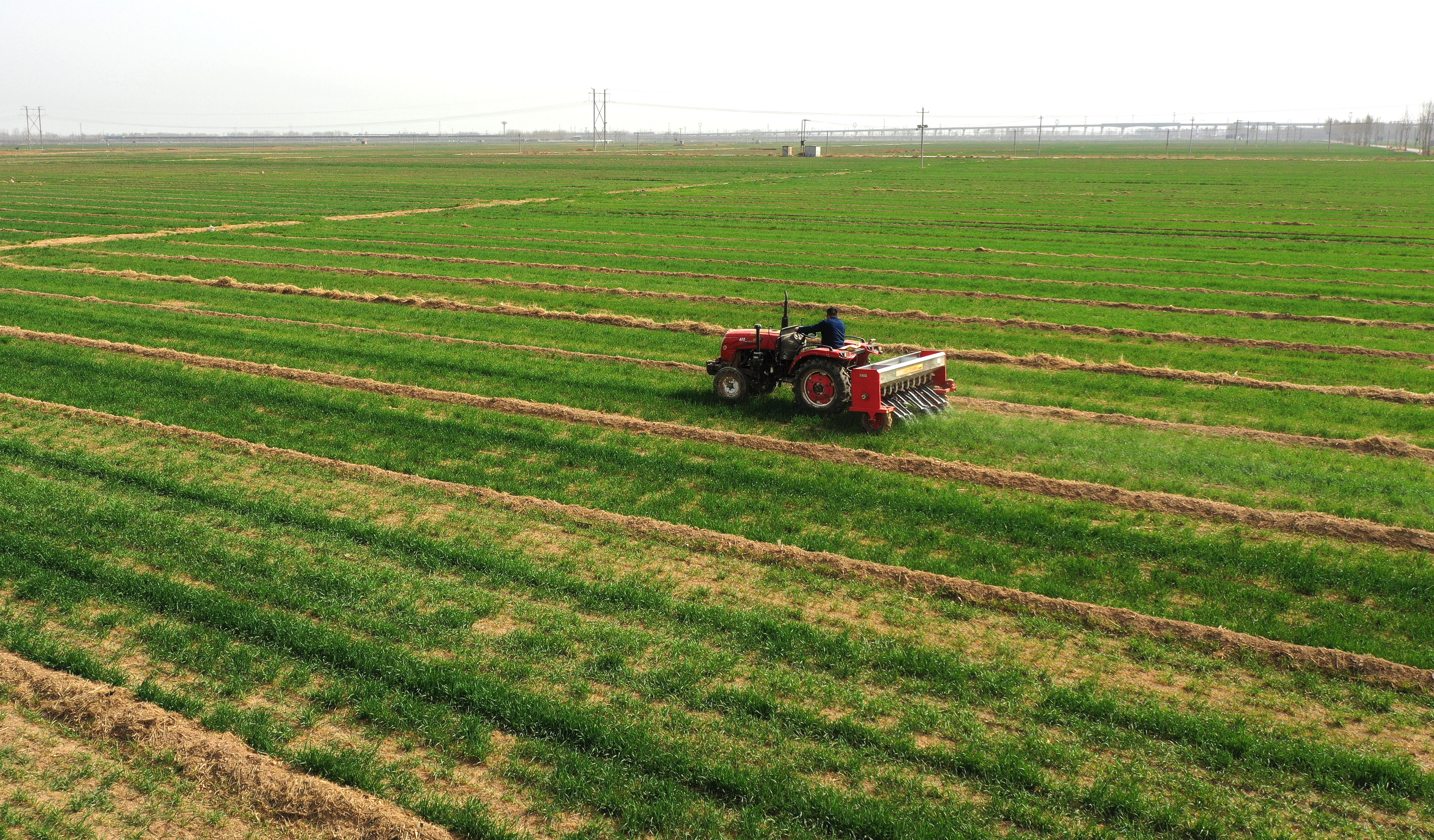 武邑縣順天機械農業合作社的技術員正在進行田間作業。