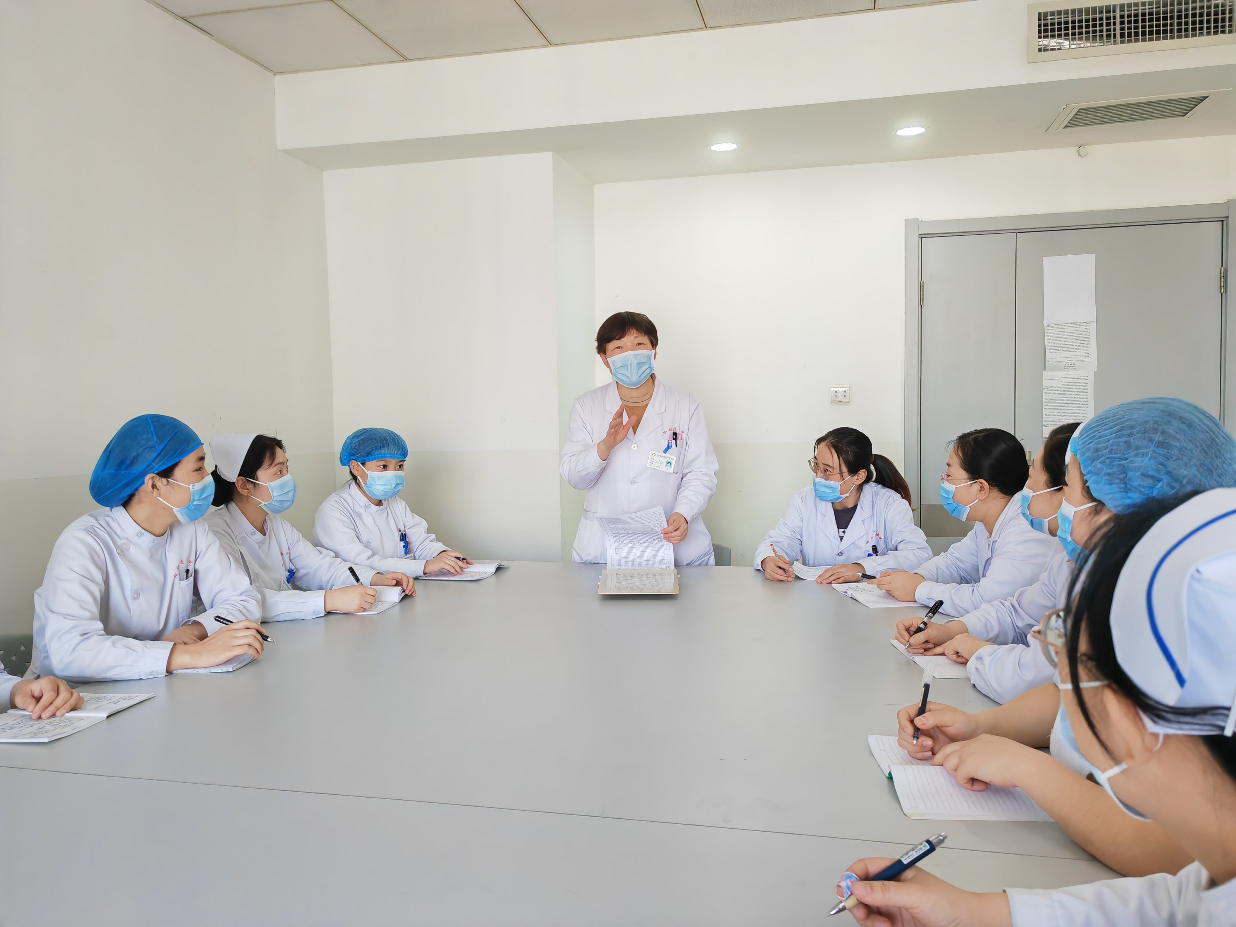 王冬梅主任(中)組織大家進行業務學習。