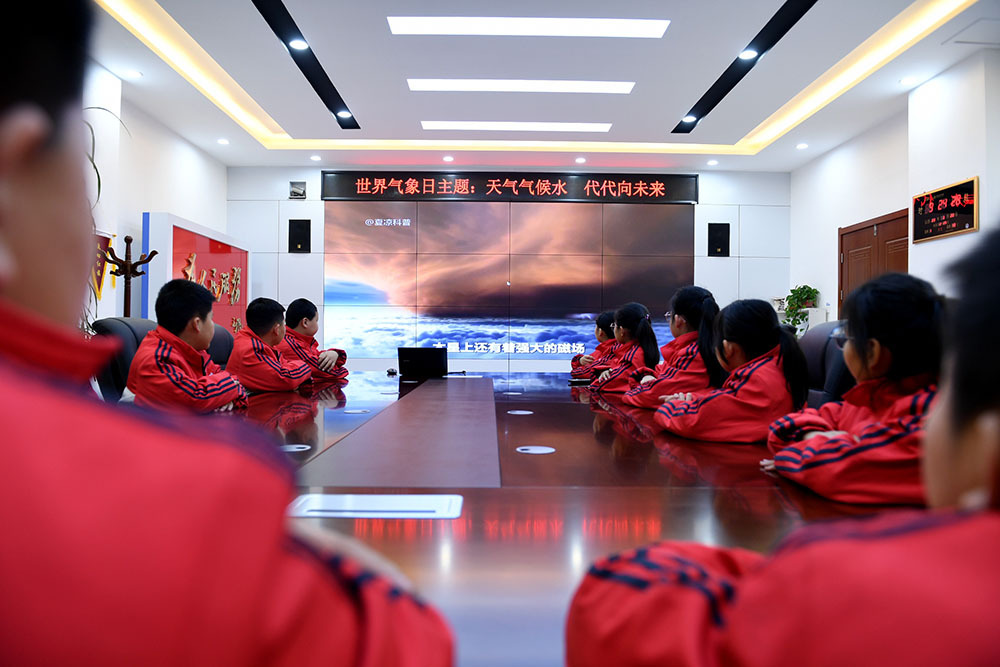 小學(xué)生觀看世界氣象日宣傳片。白詠玉 攝