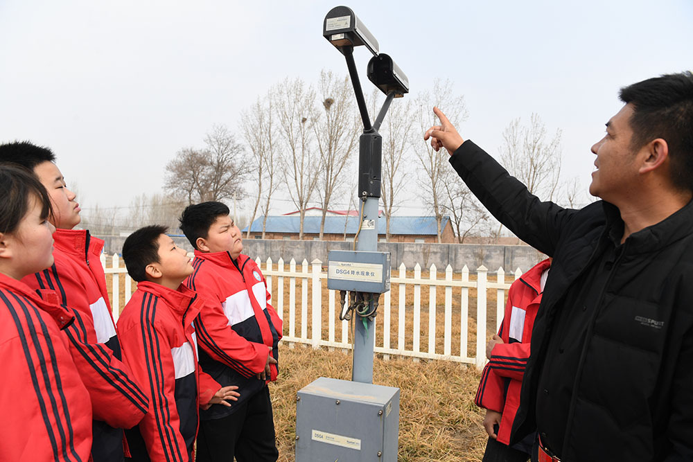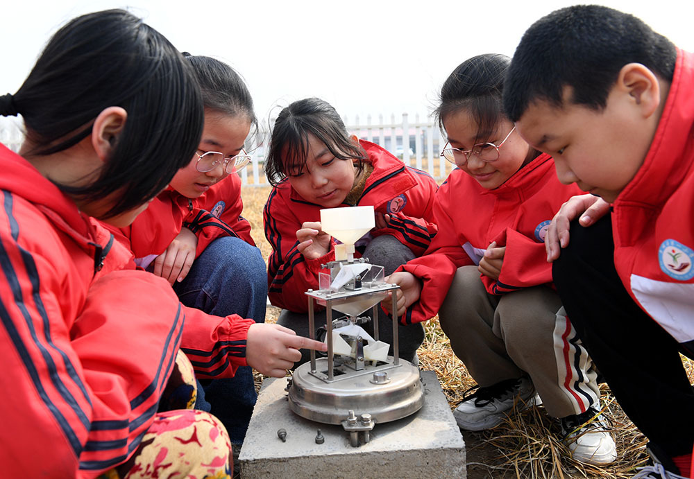 小學(xué)生們了解降水現(xiàn)象儀工作原理。白詠玉 攝