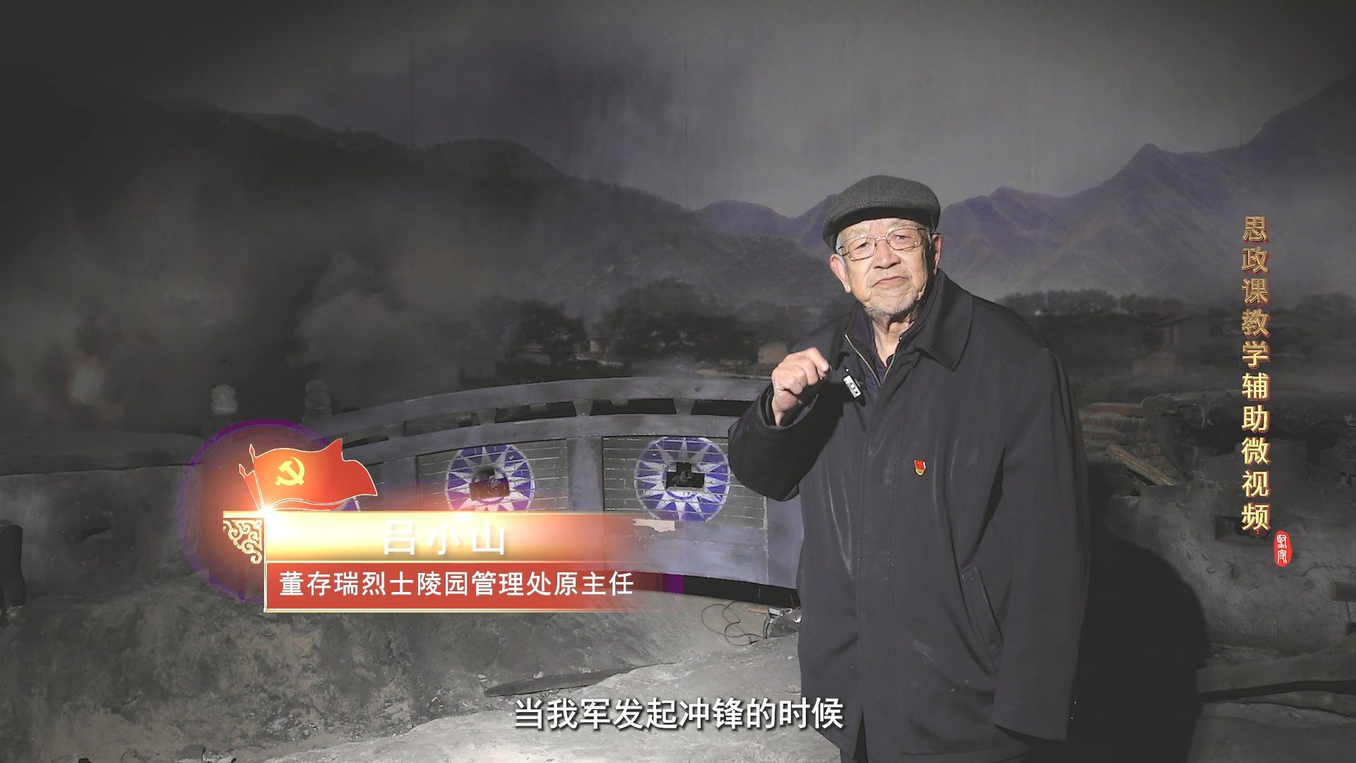這時,董存瑞向連長請戰(zhàn):“我是共產(chǎn)黨員,請準許我去!”他抱起炸藥包,沖向暗堡,前進中左腿負傷,仍頑強堅持沖到橋下。由于橋形暗堡距地面超過身高,兩頭橋臺又無法放置炸藥包。危急關頭,董存瑞用左手托起了15公斤炸藥包,把身體當成支架,拉響了導火索。