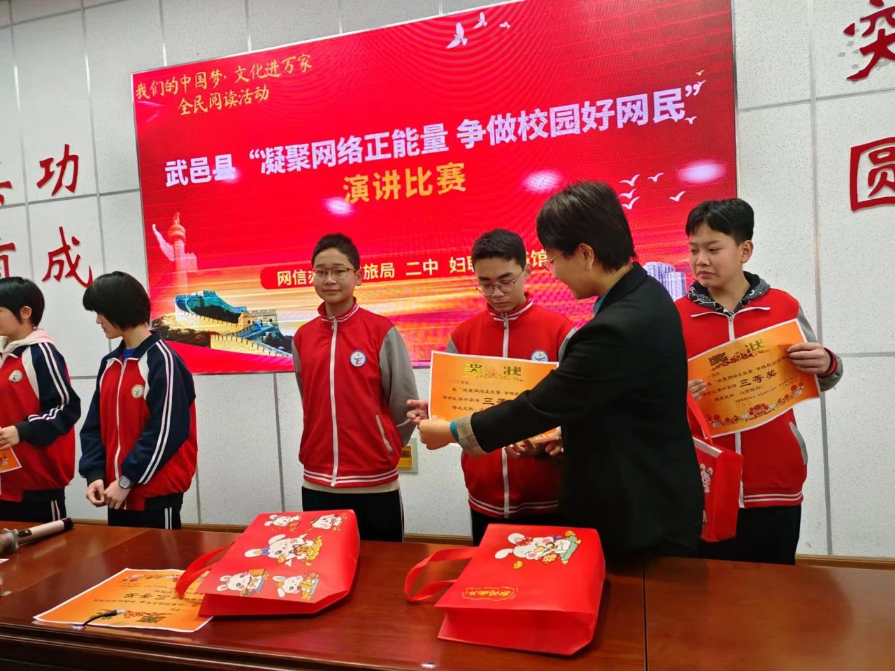 青少年是網絡文明的受益者,也是網絡文明的建設者。為了弘揚網上正能量,營造綠色網絡環境,提升學生網絡素養,引導他們文明上網、文明用網,3月29日上午,衡水市武邑縣委網信辦聯合文廣旅局、縣婦聯、圖書館在武邑縣二中舉辦“凝聚網絡正能量 爭做校園好網民”主題演講比賽。