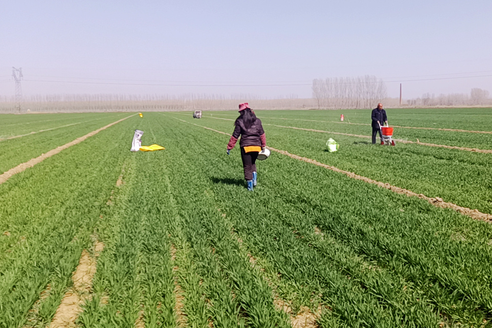 噴藥施肥,呵護麥苗生長。梁勝男 攝