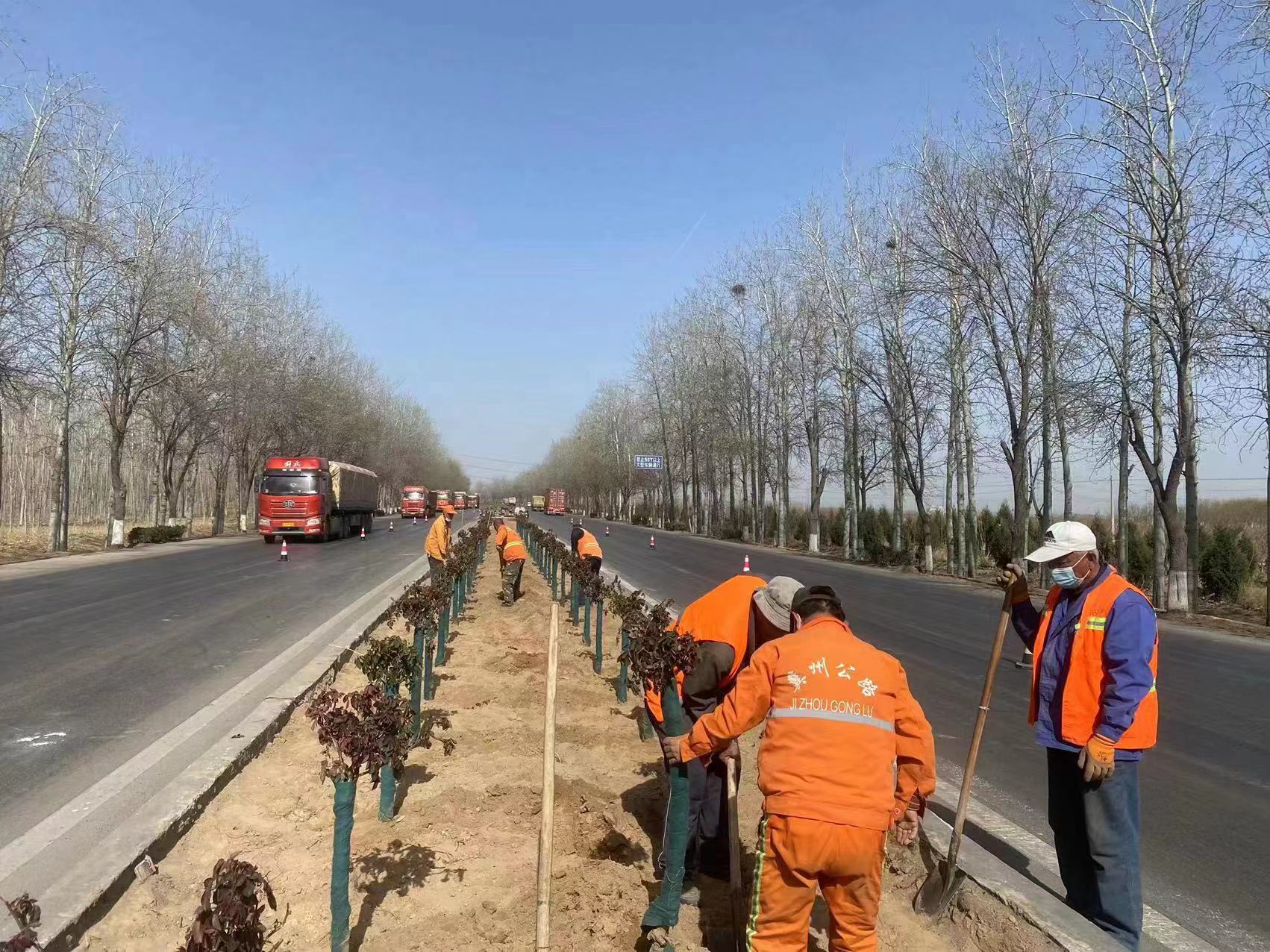 加強綠化管護。兼顧美觀和安全的前提下,該局對公路沿線綠化帶進行修剪整形,避免因樹木生長過盛影響行人視線、遮擋交通標志。適時澆灌返青水,促進春季苗木生長。及時對缺損苗木進行補植,確保達到良好綠化效果。