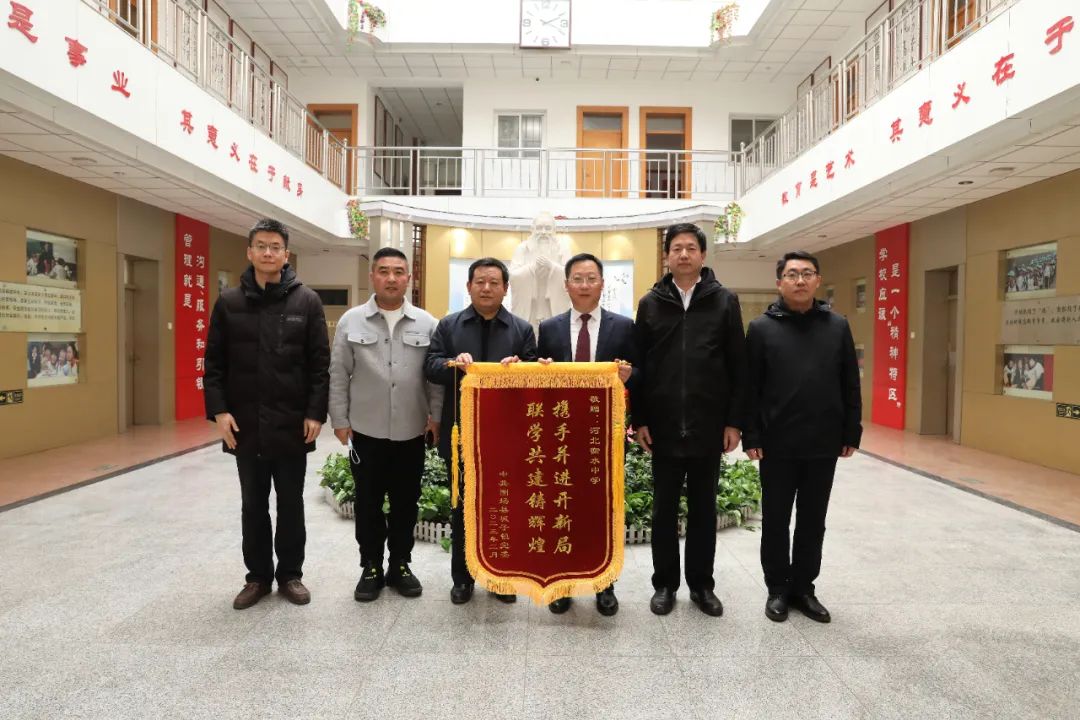 近日,省廣電局媒體融合發(fā)展處處長(zhǎng)郭安治、承德市圍場(chǎng)縣城子鎮(zhèn)黨委書記趙忠軍等一行代表圍場(chǎng)縣城子鎮(zhèn)黨委將一面寫有“攜手并進(jìn)開新局 聯(lián)學(xué)共建鑄輝煌”的錦旗送到衡水中學(xué),校領(lǐng)導(dǎo)郗會(huì)鎖、郭春雨接待了來訪客人。黨委書記郗會(huì)鎖代表學(xué)校接受了錦旗,并表示,今后學(xué)校將進(jìn)一步做好同各單位黨組織的陣地共建,促進(jìn)黨建工作同步提升,同頻共振。