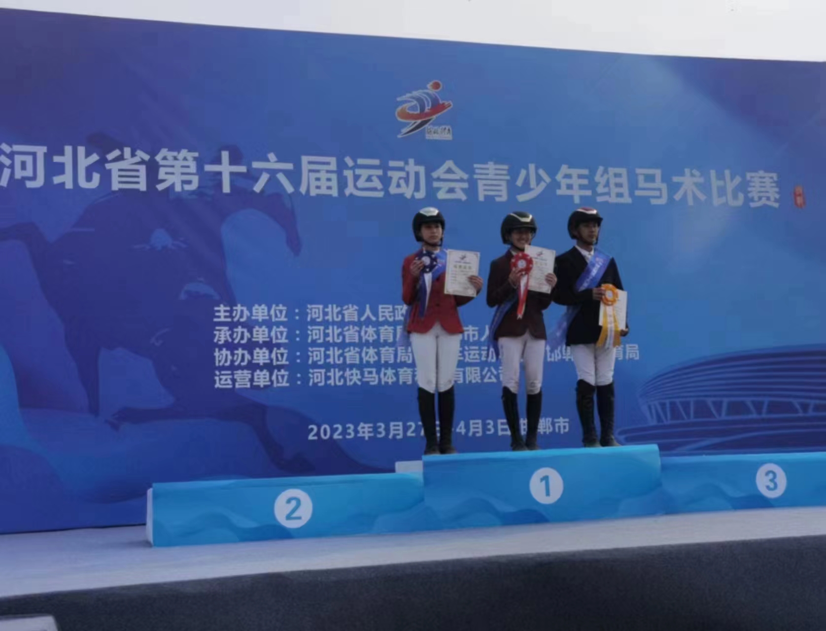 4月2日,河北省第十六屆運動會青少年組馬術比賽落下帷幕,衡水名揚國際馬術俱樂部的小選手們代表衡水馬術隊,取得了一金一銀一銅的好成績。其中,在80CM 級別個人賽中,張雨馨勇奪第一名,被河北省體育局授予“一級運動員”稱號,是本屆馬術比賽中我省唯一獲此稱號的運動員。