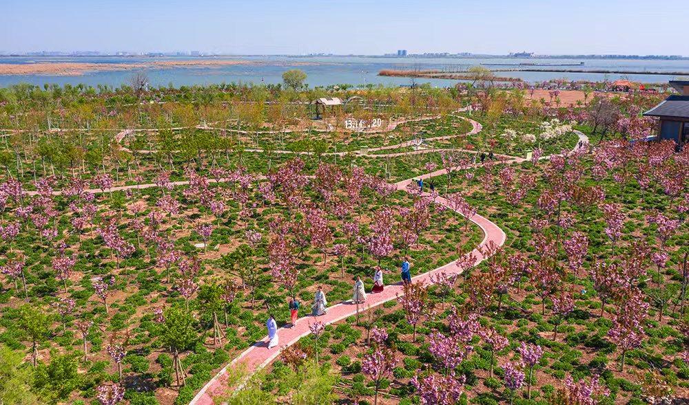 近日,衡水湖櫻花島上花團(tuán)錦簇,春風(fēng)吹過帶來縷縷清香,游客乘船登島,可見櫻花、梅花、山桃、碧桃、海棠等花木在島上競(jìng)相綻放,花期涵蓋早、中、晚期,觀賞期自3月中下旬起長(zhǎng)達(dá)40余天。蓮花造型路、塑膠蓮心廣場(chǎng)、“濕地之眼”廣場(chǎng)、棧道等景觀在春花映襯下更顯別致,吸引游客紛紛前來觀景打卡。
