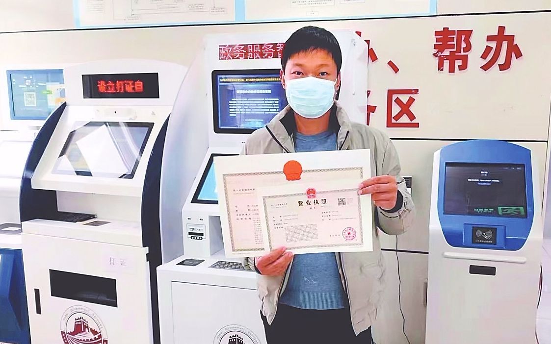 高女士拿到武強縣首張全程智能化審批營業執照。武強縣行政審批局供圖