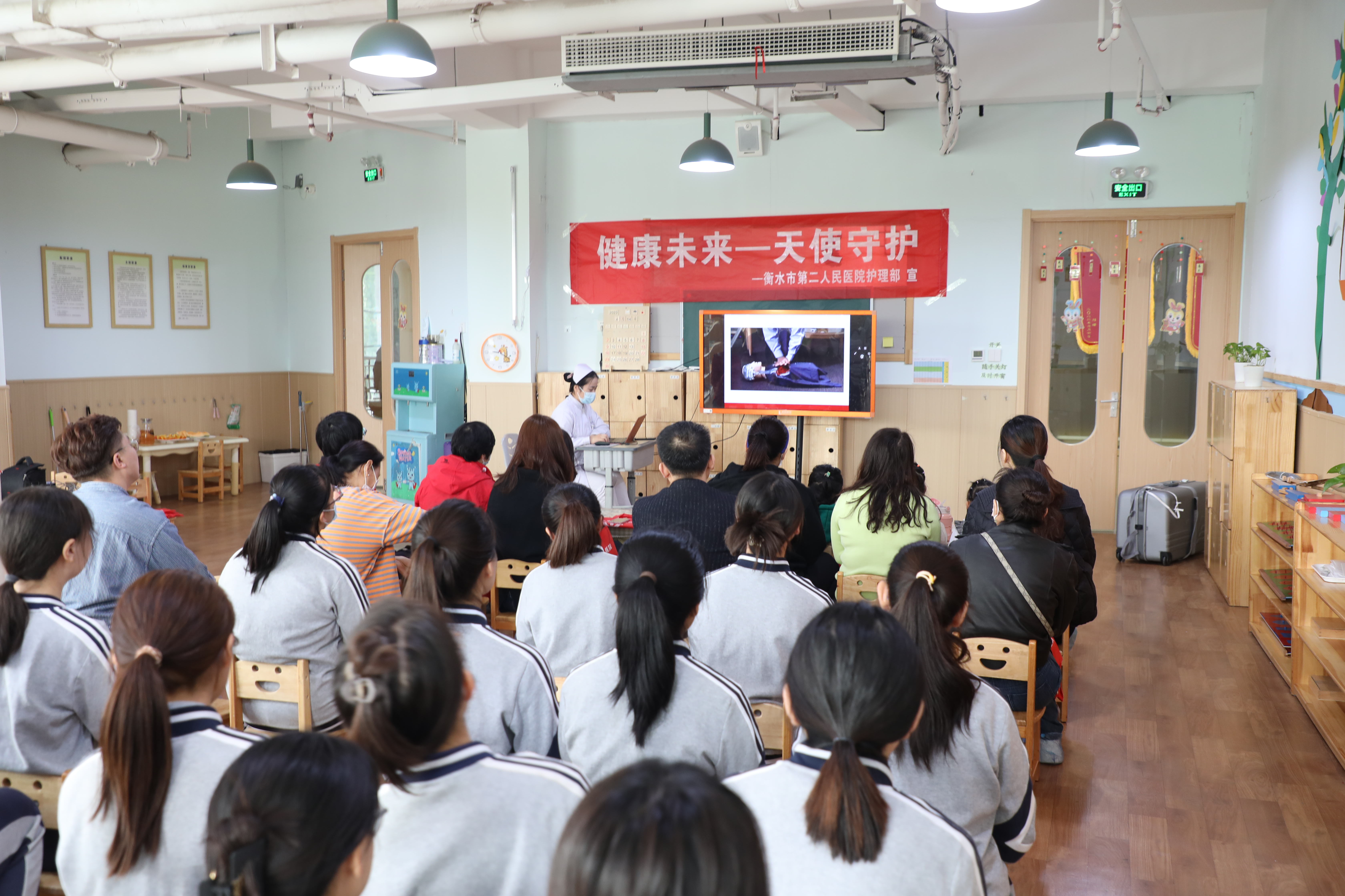 近日,衡水市第二人民醫院護理團隊受邀走進桃城區心世界幼兒園,面對面為全體教職工、小朋友及家長講解安全防護知識和急救指導,開展了一場特殊的安全科普課程。