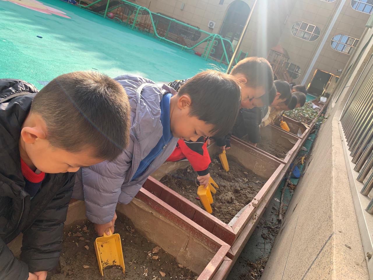 谷雨正是春播春種的最好時(shí)機(jī),老師帶領(lǐng)孩子們一起播種農(nóng)作物。在種植園地,孩子們拿著小鏟子、水壺等各類種植工具翻泥土、填土、澆水……忙得不亦樂乎,儼然是農(nóng)作小能手。